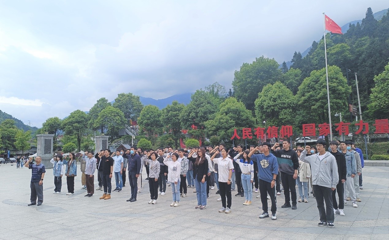 为深入学习贯彻习近平新时代中国特色社会主义思想,引导青年党员深刻认识中国特色社会主义制度优越性、政党优势与举国体制优势,厚植爱党爱国爱社会主义的情感,汲取奋进新时代的智慧力量,太阳网集团tcy8722于2023年5月7日开展“映秀行”党支部活动,由公司党委廖勇明副书记带队,辅导员何惠老师、陈林老师、张帆老师与何阳老师一同组织2019级本科、2020级硕博、2021级硕博和2022级硕博党支部党员参加,实地探访5.12汶川大地震震中——映秀镇,开展爱党爱国爱社会主义主题教育。