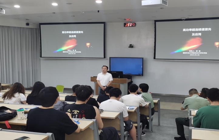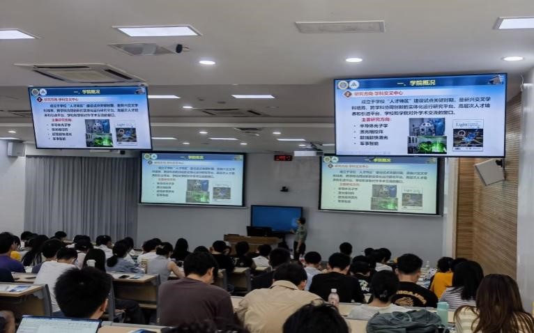 本次招生宣讲会由国防科技大学前沿交叉学科公司的多位老师和同学亲临现场,其中国防科大的侯静研究员在现场与同学们分享了她所负责的科研项目,丰富了同学们对于光研究的方向。而王小林研究员则是介绍了本科和研究生的招生计划,在未来的科学研究上给予了同学们莫大的鼓励。