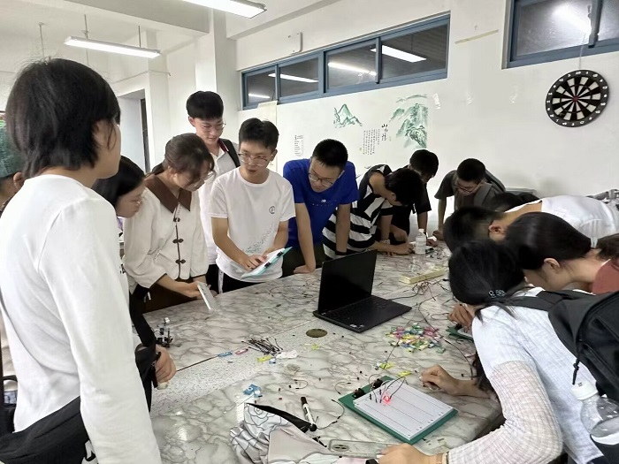 活动当天,同学们兴致勃勃地来到电子科技园,并且在主席团的有序带领下同学们有序参观四个部门。首先,同学们参观了技术部。在技术部,同学们看到了一些由学长学姐制作的成品,并且亲自体验了一些简单的电路搭建。接下来,同学们参观了行政部和外联部,并且在学长学姐的介绍下,他们了解到行政部和外联部在电子科技园中的不同职能,知晓了电子科技园近年取得的成就。行政部和外联部的学长学姐也为同学们简单地介绍了船模,更大程度地激发了同学们的兴趣 。最后,同学们参观了宣传部。宣传部的学长学姐们分别为同学们介绍了宣传部的网宣组,PS组,手绘组的工作,并且也带领同学们参观了近几年学长学姐的作品。