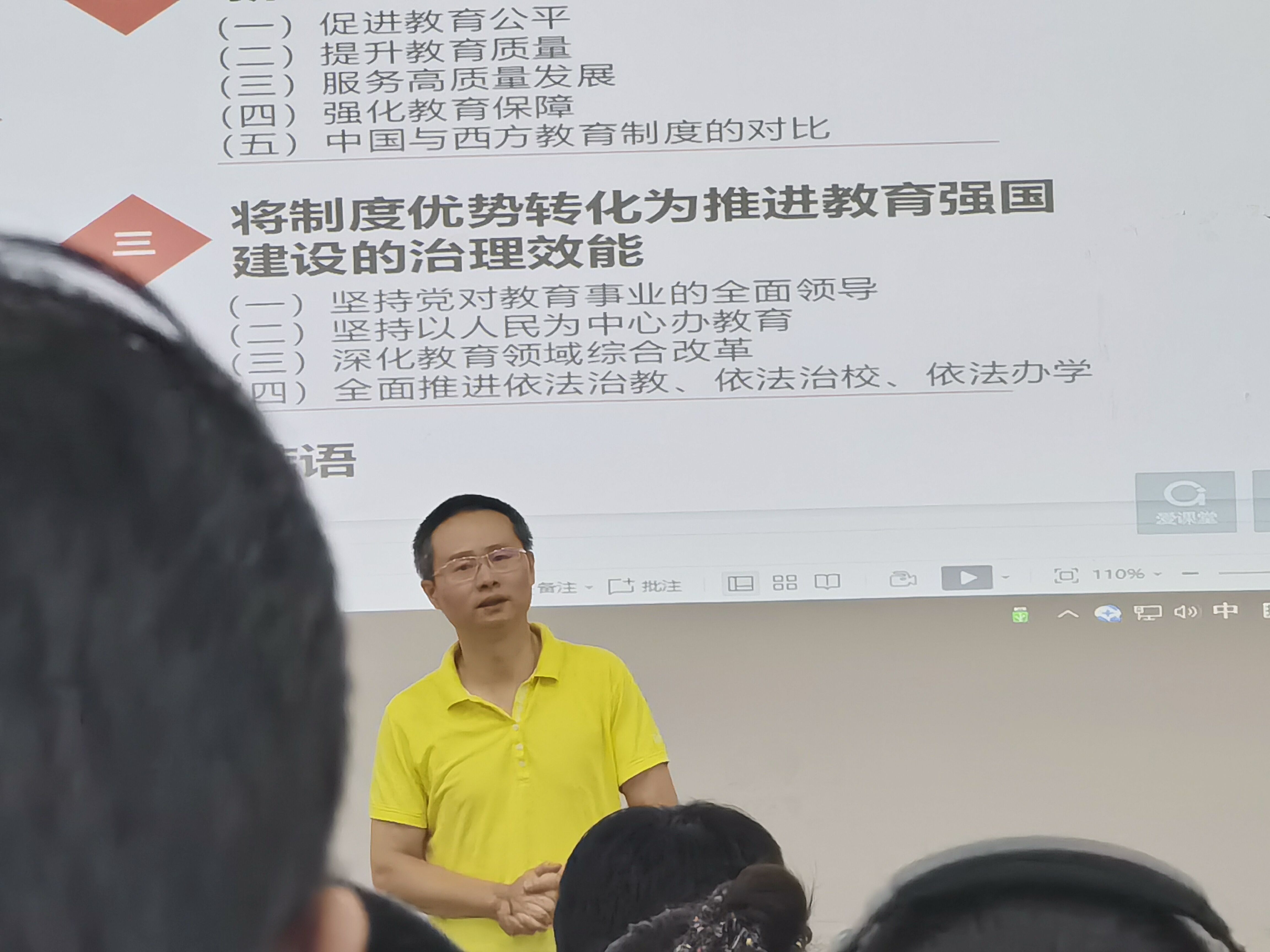 9月22日下午,公司2020级本科电子信息工程班和光电班顺利进行了的第一次形教课。谢老师围绕着“发挥制度优势,推进教育强国建设”的主题授课,谢老师首先从我国教育发展的基本制度进行了讲述,给员工们仔细地讲解我国现在关于教育发展的制度;接着谢老师从我国国情和社会制度出发,讲述了新时代教育发展中的制度优势;谢老师也着重强调了在新时代推进教育强国建设上应该如何提高治理效能。