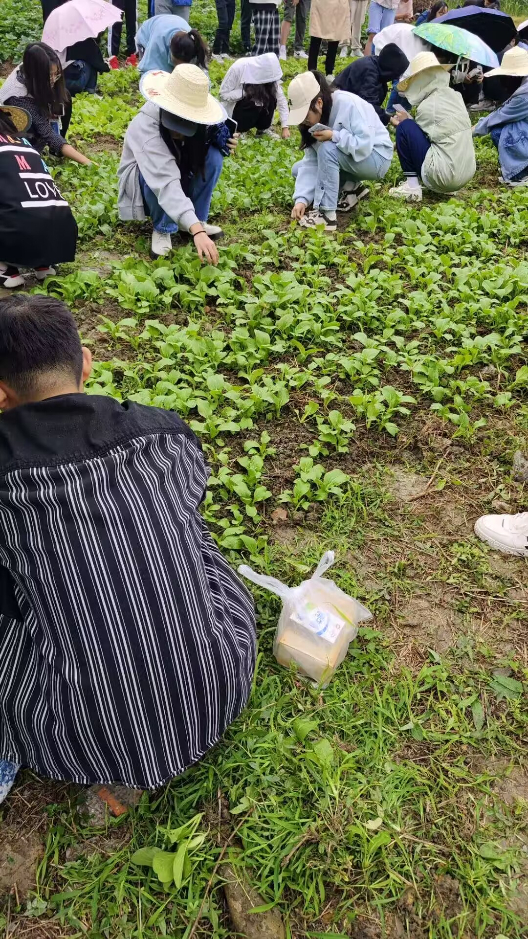 活动伊始,在负责老师的细心讲解下,同学们明晰了野草与菜苗的区别,并明确了劳动内容与任务分配。由于天气原因,同学们在负责老师的带领下来到了工具房,纷纷带上了草帽。装备就绪后,同学们小心避开菜苗,整齐有序地踏进了杂草丛生的菜地中,开展除草活动。同学们不怕脏、不怕累,用辛勤的汗水呵护幼苗的成长,经过一番劳动,于上午10点,完成农场清扫任务。