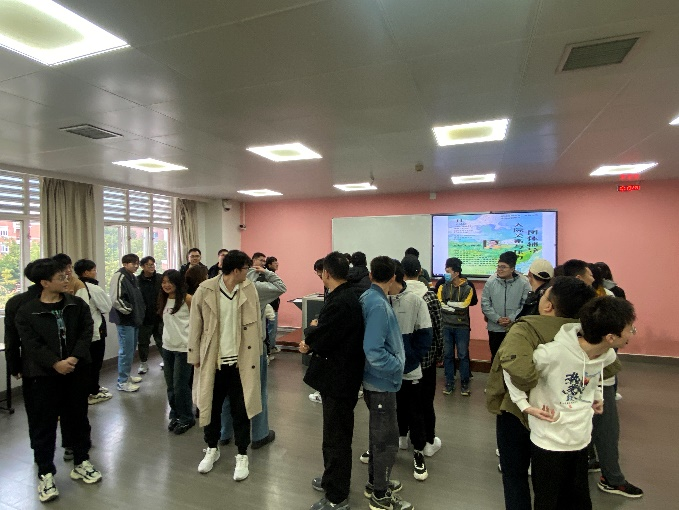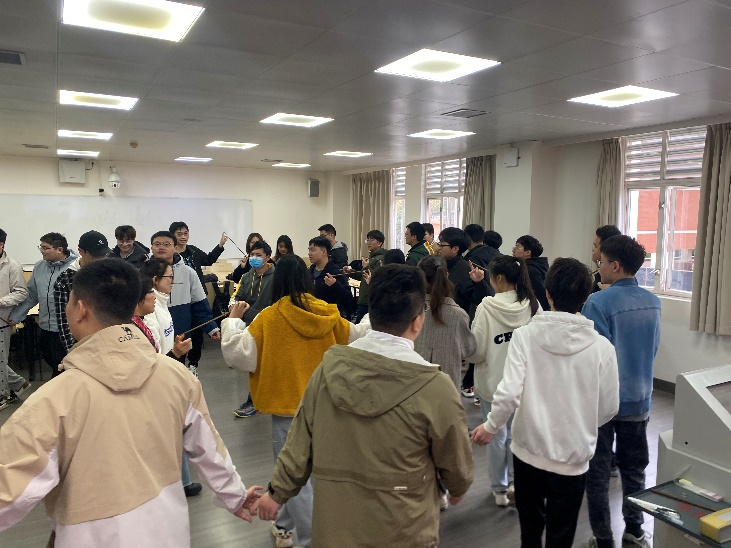 同学们在何老师的带领下进行社交活动