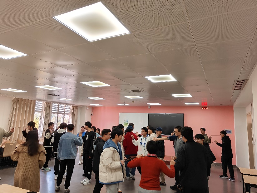 接着,何老师组织同学们跳了一段“筷子舞”,从简单而有趣的活动中体会了人际交往的奥妙,强调了团队协作的重要性。