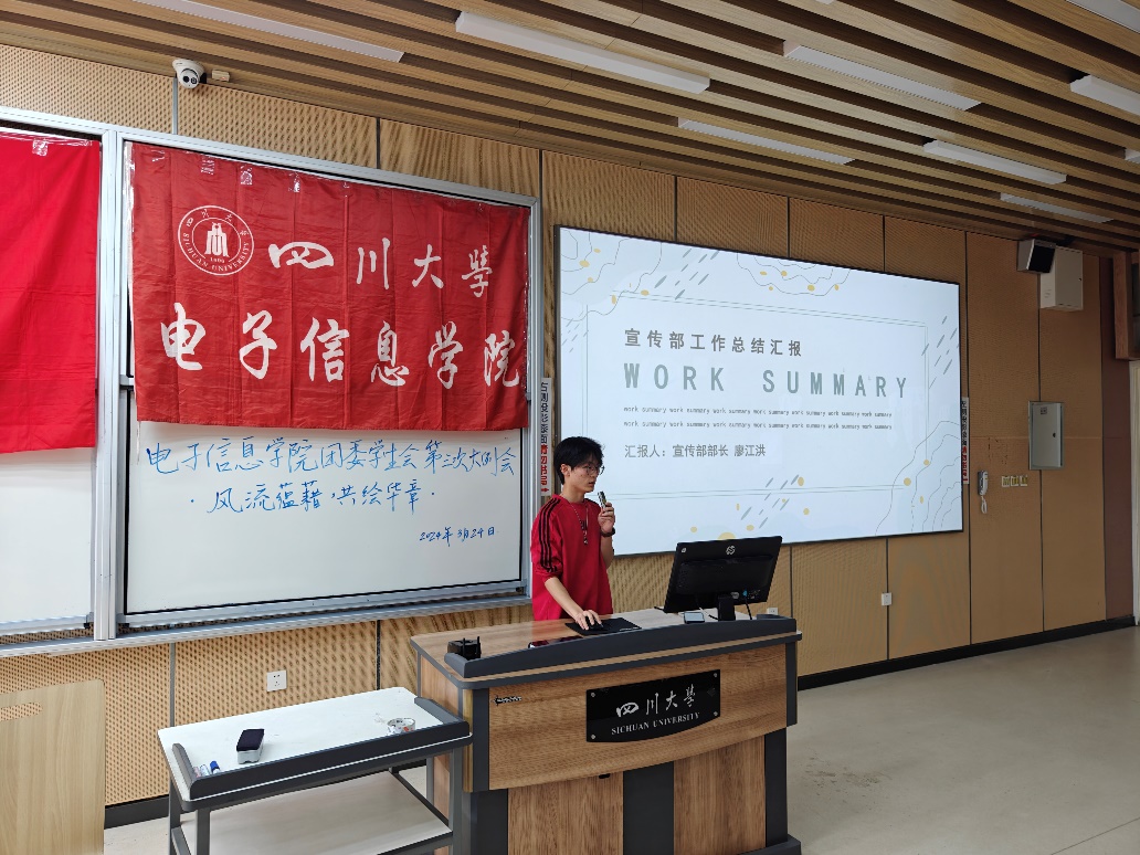 最后,申鑫老师总结了今后团学工作的重点,进一步强调了员工干部在兼顾学业的同时应当具备奉献精神,同时向各部门部长传达了下阶段的工作要求。