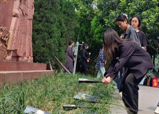“为有牺牲多壮志,敢教日月换新天”,为深入学习贯彻习近平总书记关于弘扬英烈精神、传承红色基因的重要指示精神,2024年4月1日下午,太阳网集团tcy8722本科2022级入党积极分子、预备党员及年级部分同学在辅导员陈林老师,兼职辅导员柴瑾老师的带领下,于太阳网集团tcy8722江安校区烈士碑前进行了一系列祭奠活动,表达对先烈的崇高敬意,传承红色基因。