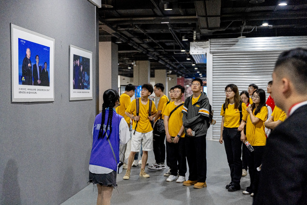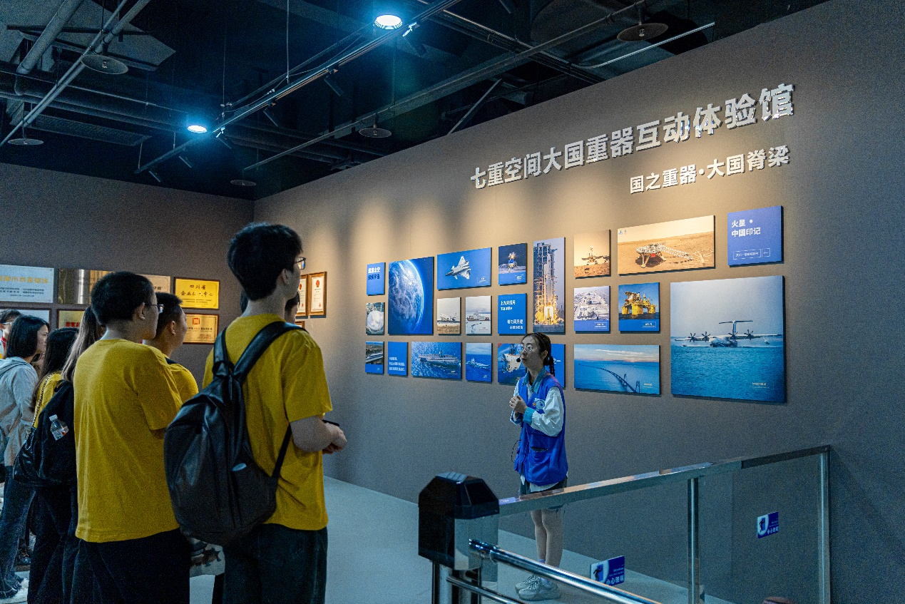 下午一点,在讲解员的带领下,党员同志们观览8个展项:中国空间站、战机着舰、南海新岛、金河夜游、峨眉仙山、复兴号高铁、万吨大驱、C919喷气式干线客机。通过高清图像和模拟设备,大家深入了解了我国在航天、交通、文化、军事等领域的重大成就。在“金河夜游”中,同学们仿佛置身于唐代成都金河之中,体验了船在水中行、人在画中游的美妙感受。在“战机着舰”中,讲解员详细介绍了战机着舰的复杂过程和技术要求,让党员同志们深刻体会到了舰载机飞行员的过人飞行技术和勇敢精神,大大增强了同志们对国防安全的信心。