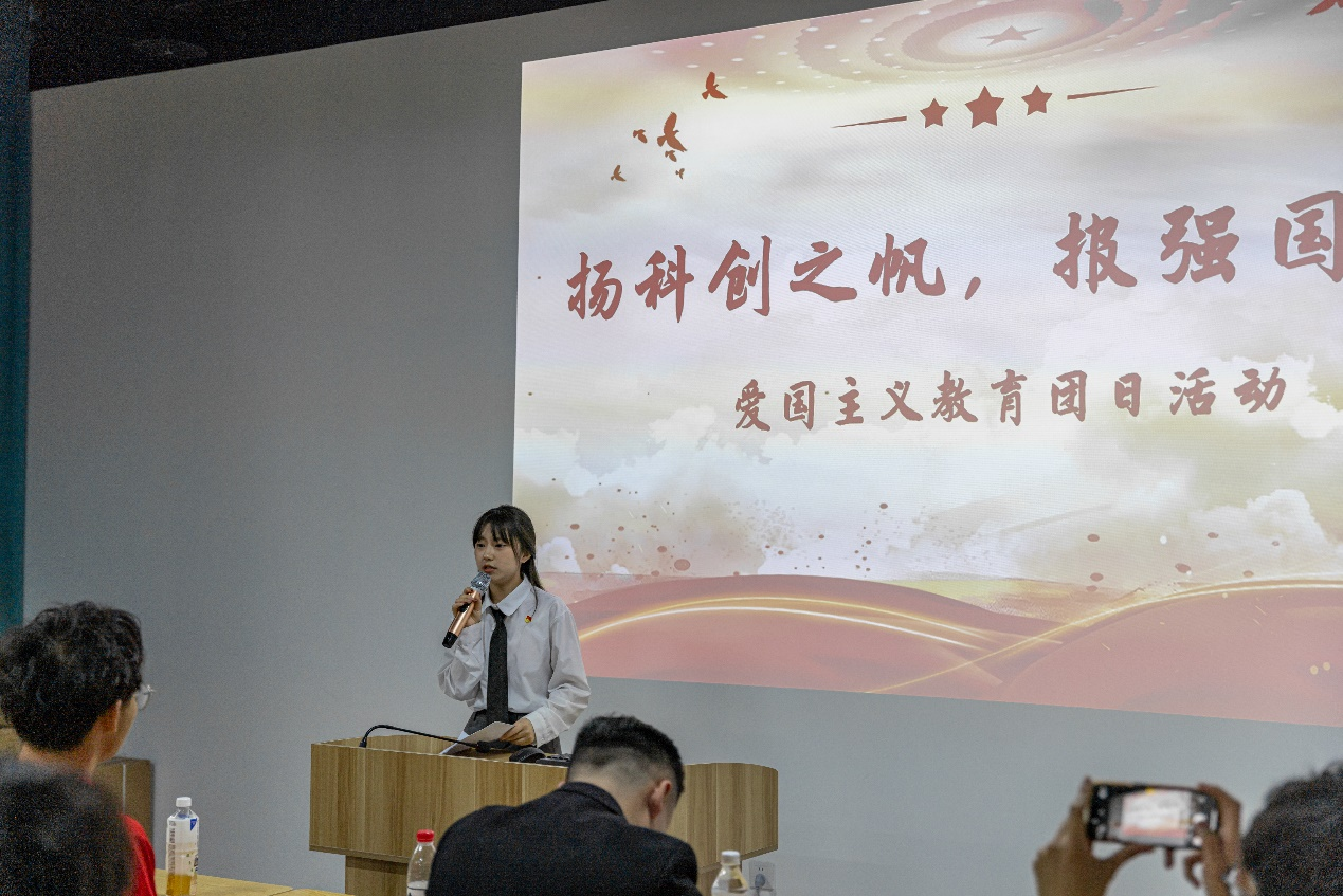 四川省青马工程“高校班”学员代表、四川省员工联合会驻会执行主席王月佳开展主题教育分享,重点介绍了我国航天事业取得的成就。