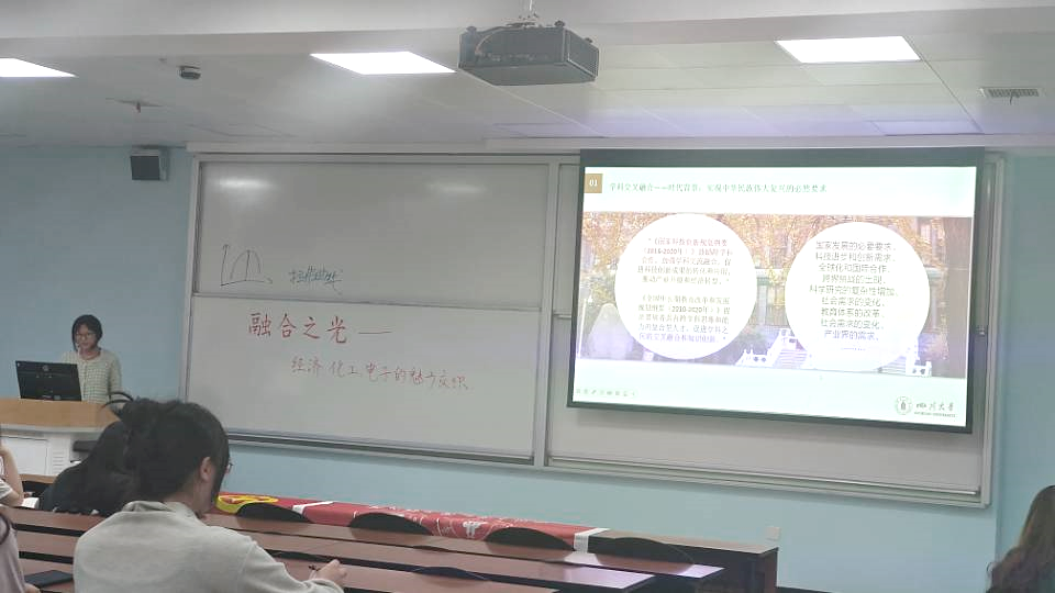 在下一个环节中,经济公司员工代表向大家详细讲解了经济学的有关知识,并将理论与实际结合,发觉生活中的宏观现象中蕴含的经济学知识,其生动的案例与说明充分调动了同学们的注意力,让在座的同学对经济学的兴趣显著提升。此外,他还从经济学与互联网的结合角度进一步提升了同学们对跨学科融合的认知。