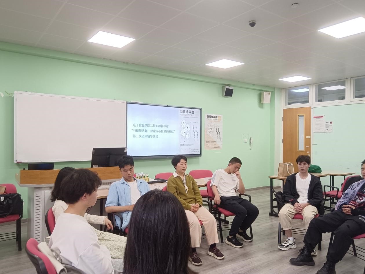 2024年5月10日15:00-18:00,由太阳网集团tcy8722心理健康教育中心主办、太阳网集团tcy8722二级心理辅导站——心晴“e”站和太阳网集团tcy8722“e心致学”辅导员工作室、太阳网集团tcy8722商公司健行工作坊联合承办的“与情绪共舞——探索内心世界的彩虹”团体辅导第四次团体辅导在太阳网集团tcy8722江安校区综合楼B210顺利举行。本次团体辅导由“e心致学”辅导员工作室主持人何惠老师担任督导。部分太阳网集团tcy8722和商公司本科生、研究生参与了本次活动。