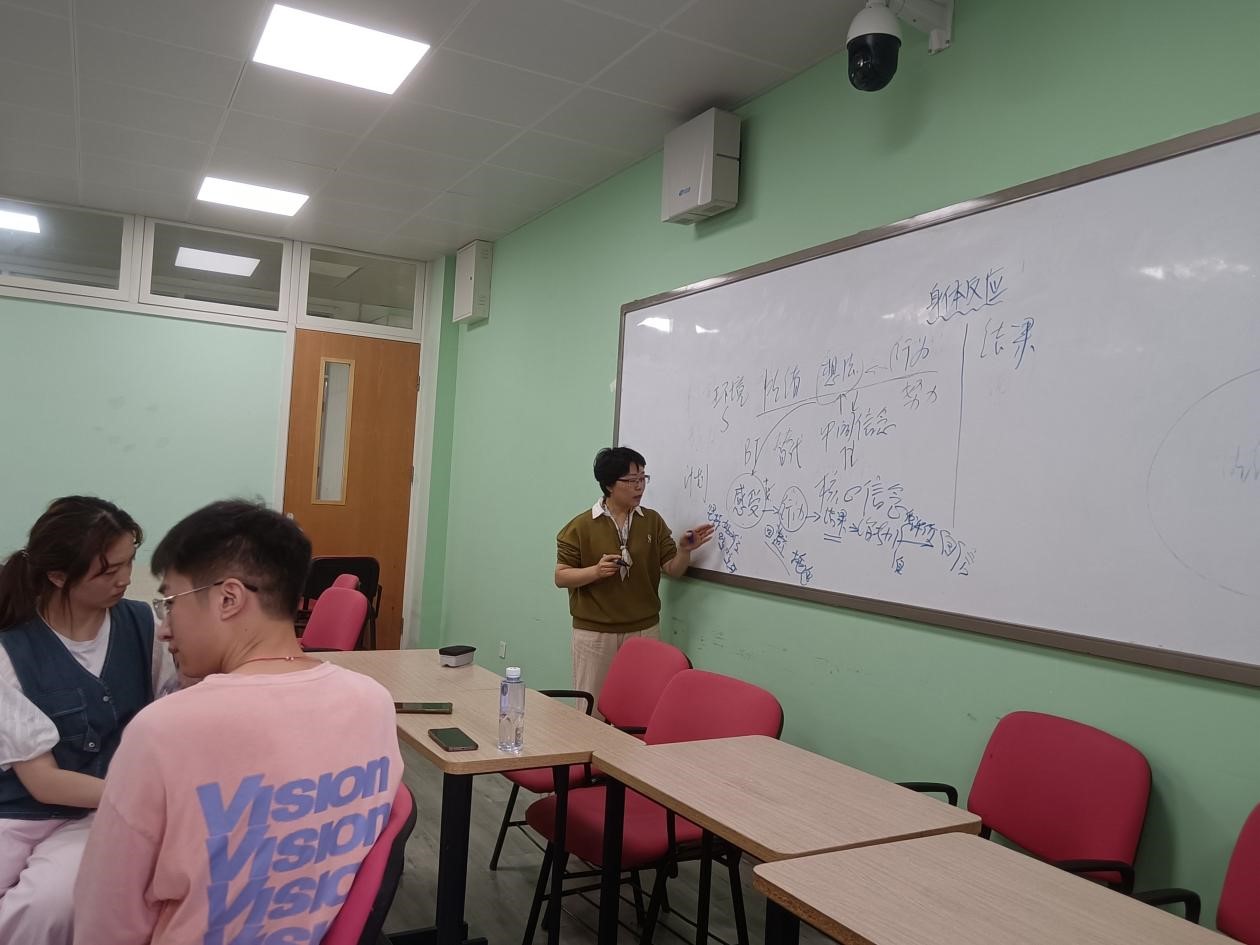 自我介绍后,为了加深同学们彼此之间的印象,何老师让同学们按方向说出坐在自己右侧同学和老师的主要信息(包括姓名、爱好和所在公司等)。在这一过程中,同学们和老师对彼此有了更为深刻的了解。通过对前面的同学和老师的个人信息的简单记忆,大家快速认识了彼此。此外,这也是老师了解同学们近期心理状况的契机,为后续的心理学理论的引入作铺垫。
