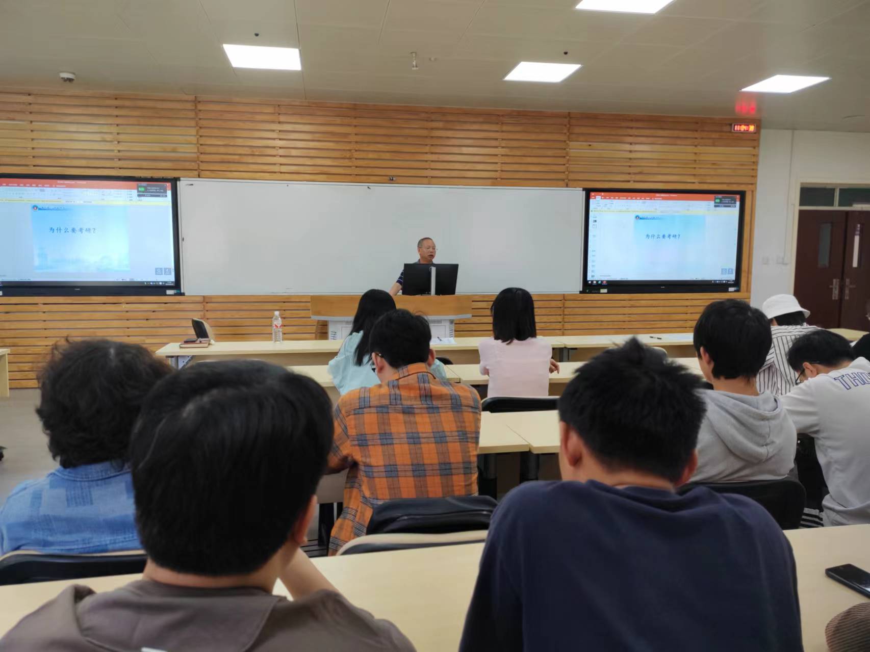 然后老师们再次说明“二战”的同学未来一年将面临的情况,建议同学们认真分析第一次考研失败原因,结合自身学习能力、自我管理能力、抗压能力等多方面因素综合考量,理性选择考研“二战”。