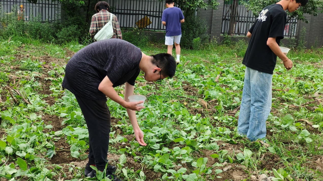 随后,每个同学在自己被分配到的“黄豆种植区”里进行播种。在老师的协助下,大家迅速投入到播种作业中。从播种到覆土,每一步操作都要求细致入微,同学们在实践中相互配合,展现了良好的团队协作精神。尽管劳动过程不乏辛苦,但同学们积极参与,态度认真,现场洋溢着积极向上的氛围。
