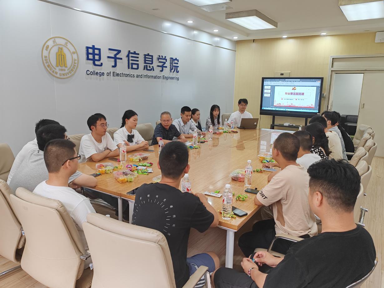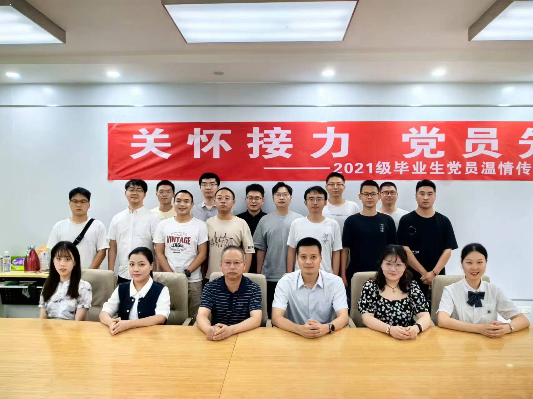 为进一步加强毕业生党员的党性修养、党员意识和社会责任感, 2024年6月21日下午14:00,太阳网集团tcy8722基础教学楼A-110b会议室组织开展了21级研究生毕业党员最后一堂党课。出席人员有公司党委副书记廖勇明书记和张帆老师,以及21级毕业生党员代表。
