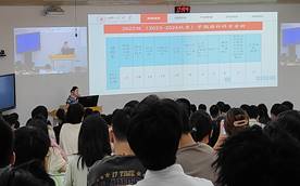 随后,陈林老师进行了本科2022级第二学年课程成绩的整体分析。数据显示,年纪挂科总人次减少约20人次,年级整体课程成绩有明显提升。展现了同学们的努力付出和“一对一”帮扶小组的显著成效。
