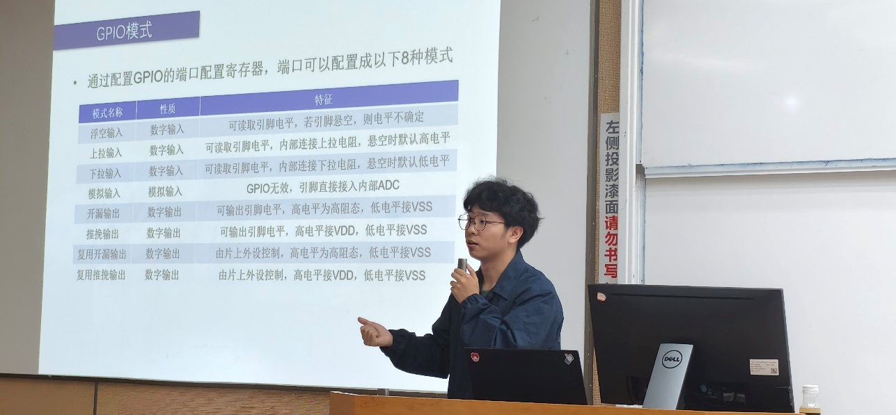 图2 周瑞学长详细地讲解单片机的GPIO模式