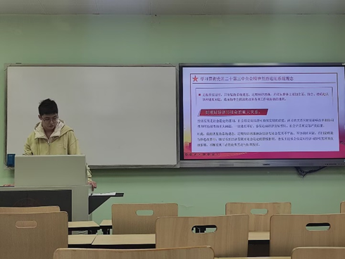 李佶同志讲到党的二十届三中全会精神主要体现在以下几个方面:进一步全面深化改革的重要性和必要性,构建高水平社会主义市场经济体制;高质量发展是全面建设社会主义现代化国家的首要任务;教育、科技、人才是中国式现代化的基础性、战略性支撑等。在本次会议分享的过程中,李佶同志强调系统观念作为辩证唯物主义的基本方法,是指导我们认识世界、把握规律、追求真理、改造世界的强大思想武器。坚持和运用系统观念,就是要坚持发展地而不是静止地、系统地而不是零散地、普遍联系地而不是孤立地、全面地而不是片面地、一分为二地而不是绝对地分析和解决问题,用科学世界观和方法论指导进一步全面深化改革,蹄疾步稳、行稳致远,基于此观点,何惠老师邀请同学们展开讨论:“作为一名研究生党员,应该怎样履行自己的党员责任?”。