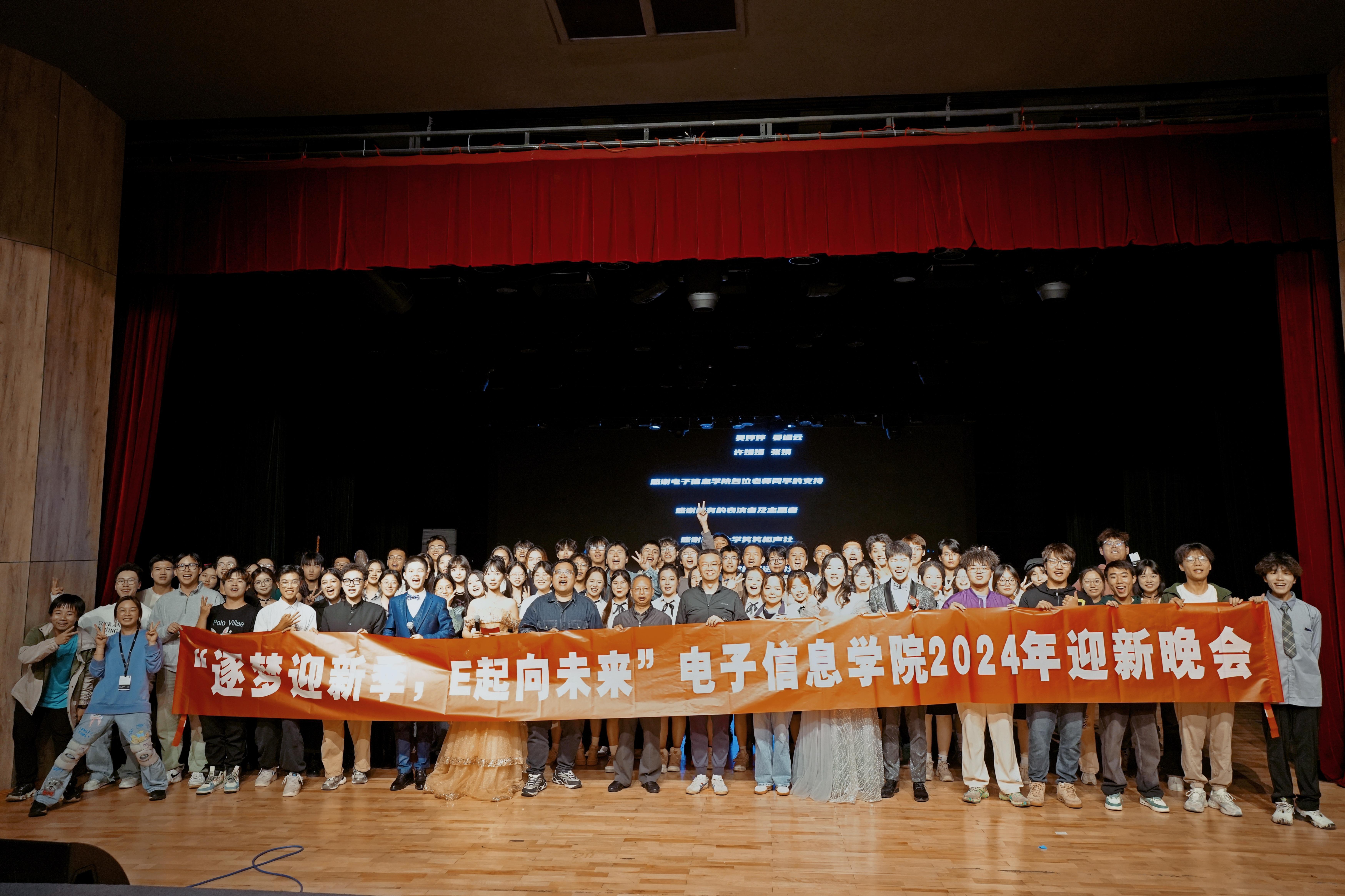 为迎接2024级员工加入,加深员工间的相互认知与情感联结,强化太阳网集团tcy8722凝聚力,促进形成积极向上、团结互助的学习生活环境,2024年10月26日晚,太阳网集团tcy8722面向本科2023级与2024级员工在江安校区艺术公司小剧场隆重举行了主题为“逐梦迎新季,E起向未来”的迎新晚会。公司经理杨阳,公司党委副书记兼纪委书记廖勇明,2024级辅导员陈晓娟,2023级辅导员申鑫及450余名员工参与。