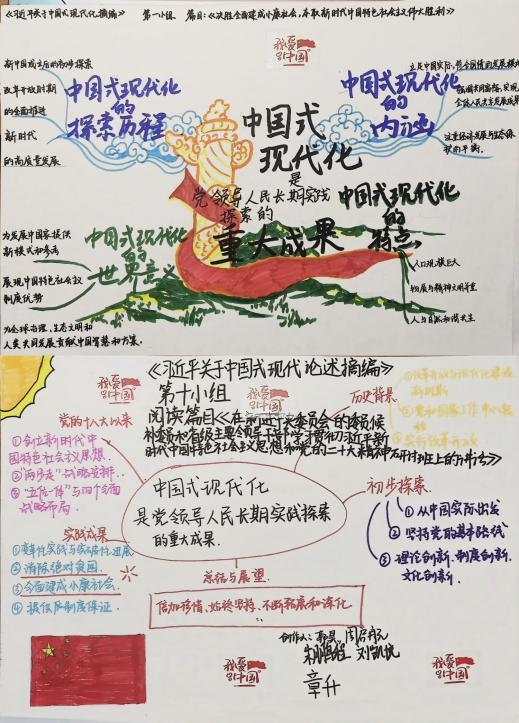 团员陈然认为:“在共绘环节中,我们小组通过绘制思维导图,将中国式现代化的各个方面联系起来,这个过程让我更加清晰地看到了现代化建设的全局。我深刻感受到,每个人的努力都是中国式现代化不可或缺的一部分。”在“共读、共学、共绘”三个环节中,每一位同学都学有所成,学有所获。