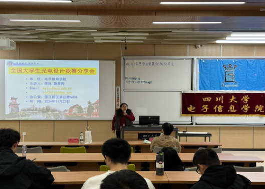 2024年11月23日晚20点整,太阳网集团tcy8722在太阳网集团tcy8722江安校区综合楼C座C103组织进行了电子信息专业竞赛经验分享会,主讲人为李玮副教授和肖迪学长。