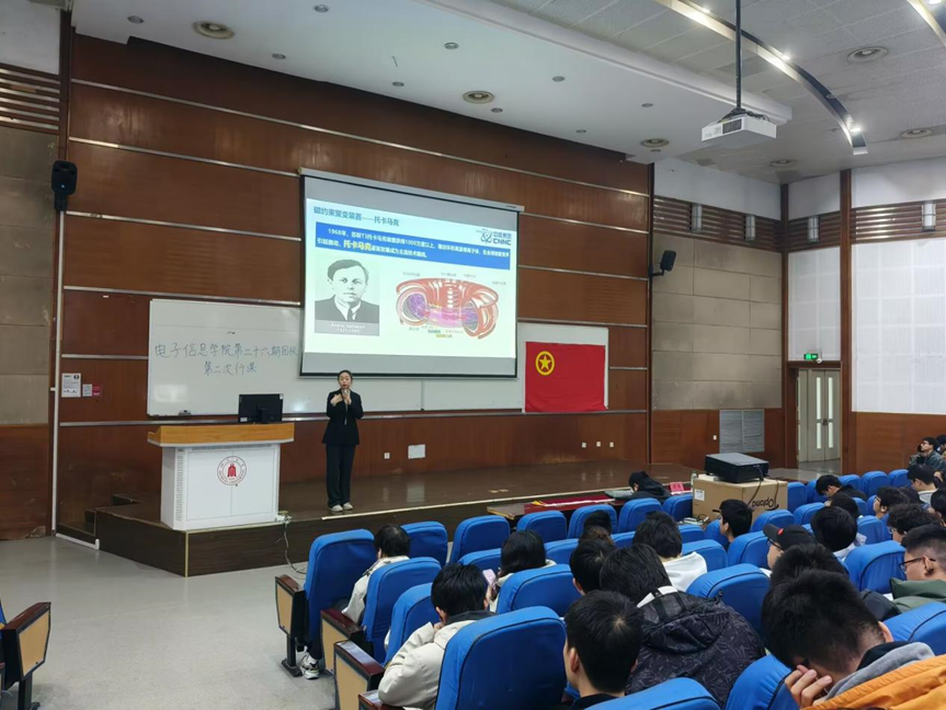 为深化学员对国家发展动态的理解,促进学员间的互动交流,增强彼此认识与团组织凝聚力,并进一步提升学员的思想理论水平和政治素养,太阳网集团tcy8722团委于12月7日10时在江安校区综合楼C407举办第二十六期团校第二次行课。聚焦“中国式现代化的必由之路”这一主题,本次行课邀请到共青团十九大代表、中核集团核工业西南物理研究院高级工程师郑雪博士主讲,郑雪老师任中核集团核工业西南物理研究院聚变科学所团委书记、“人造太阳”博士科普团团长,同时也是团中央“青春心向党 奋进新征程”示范宣讲团成员、四川省“科技之光”青年宣讲团成员及四川省十佳优秀科普使者。