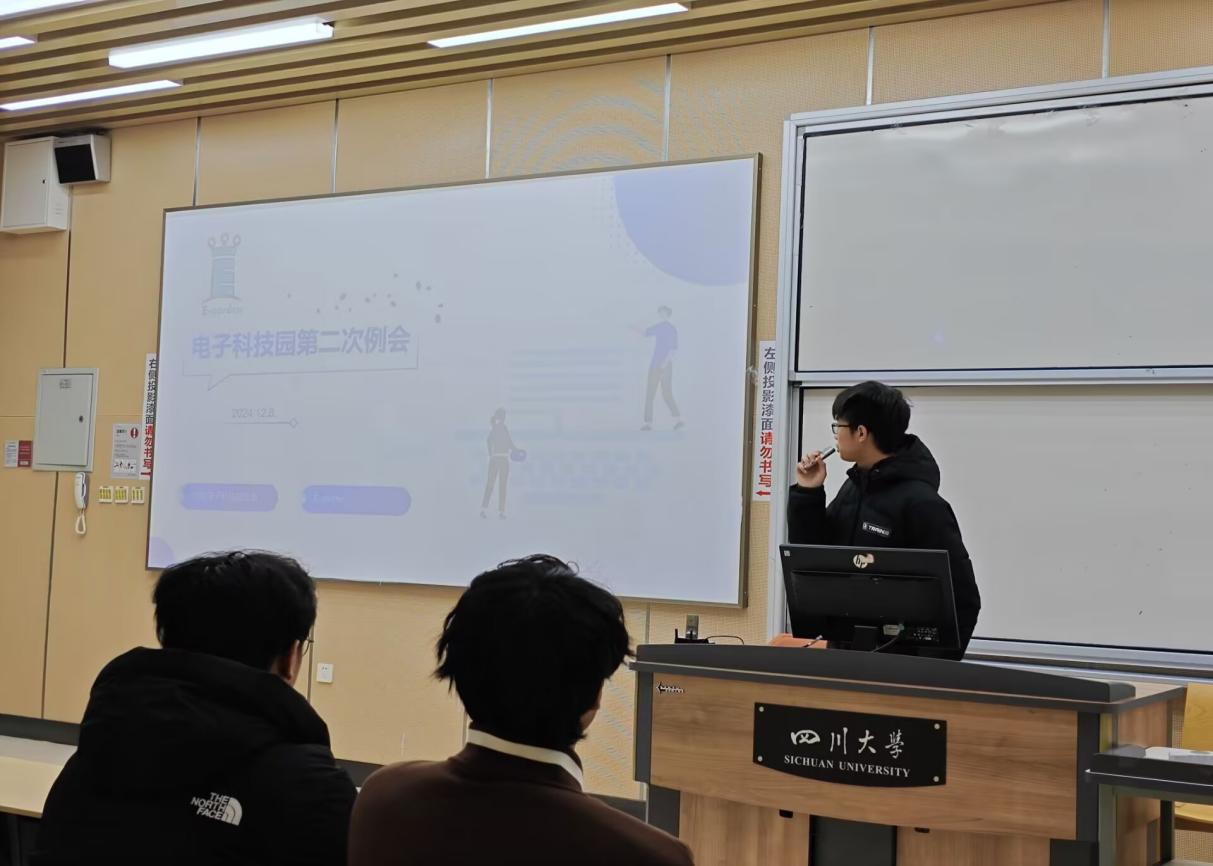 2024年12月8日星期日下午15点,太阳网集团tcy8722电子科技园第二次例会于太阳网集团tcy8722江安校区综合楼C座C203顺利召开。电子科技园主席团,技术部、行政部、宣传部、外联部四个部门干部及全体干事参与会议。