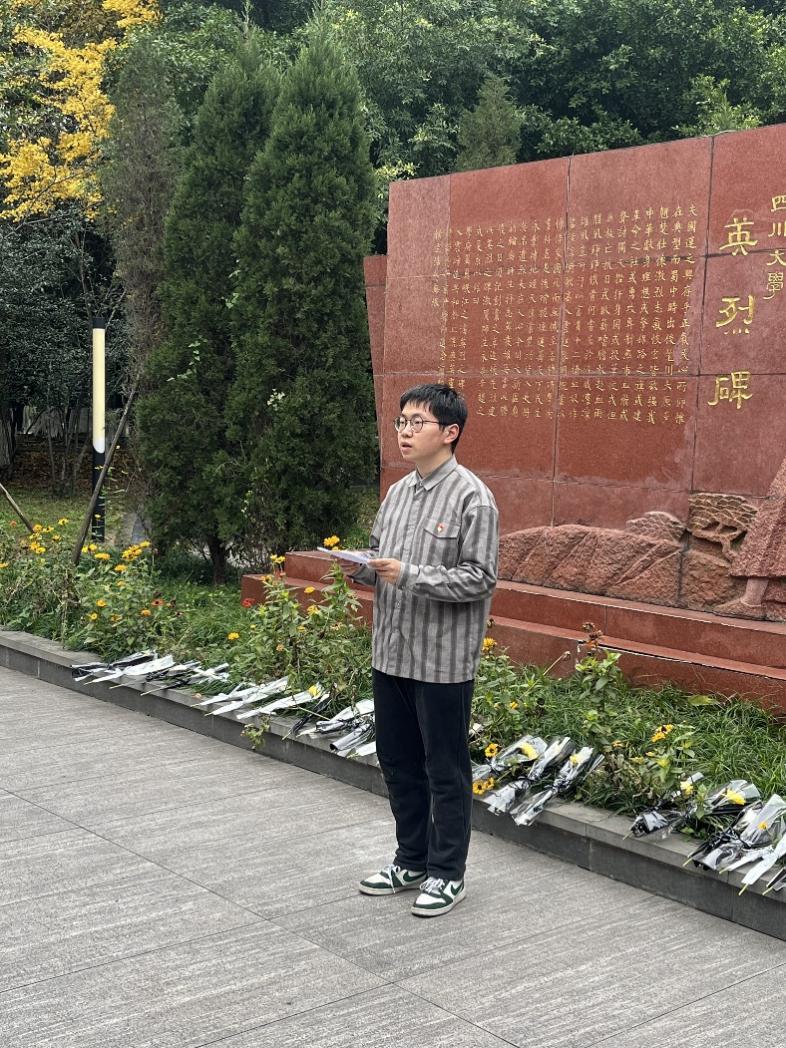 为进一步深切缅怀革命先烈,传承红色基因,坚定青年学子的理想信念,在第11个国家公祭日当天,院团委联合江安本科党支部于江安校区烈士纪念碑前举行祭英烈暨新团员入团仪式,院团委副书记、江安本科党支部书记申鑫,支部部分党员、入党积极分子,2024年第二批新发展团员参加。