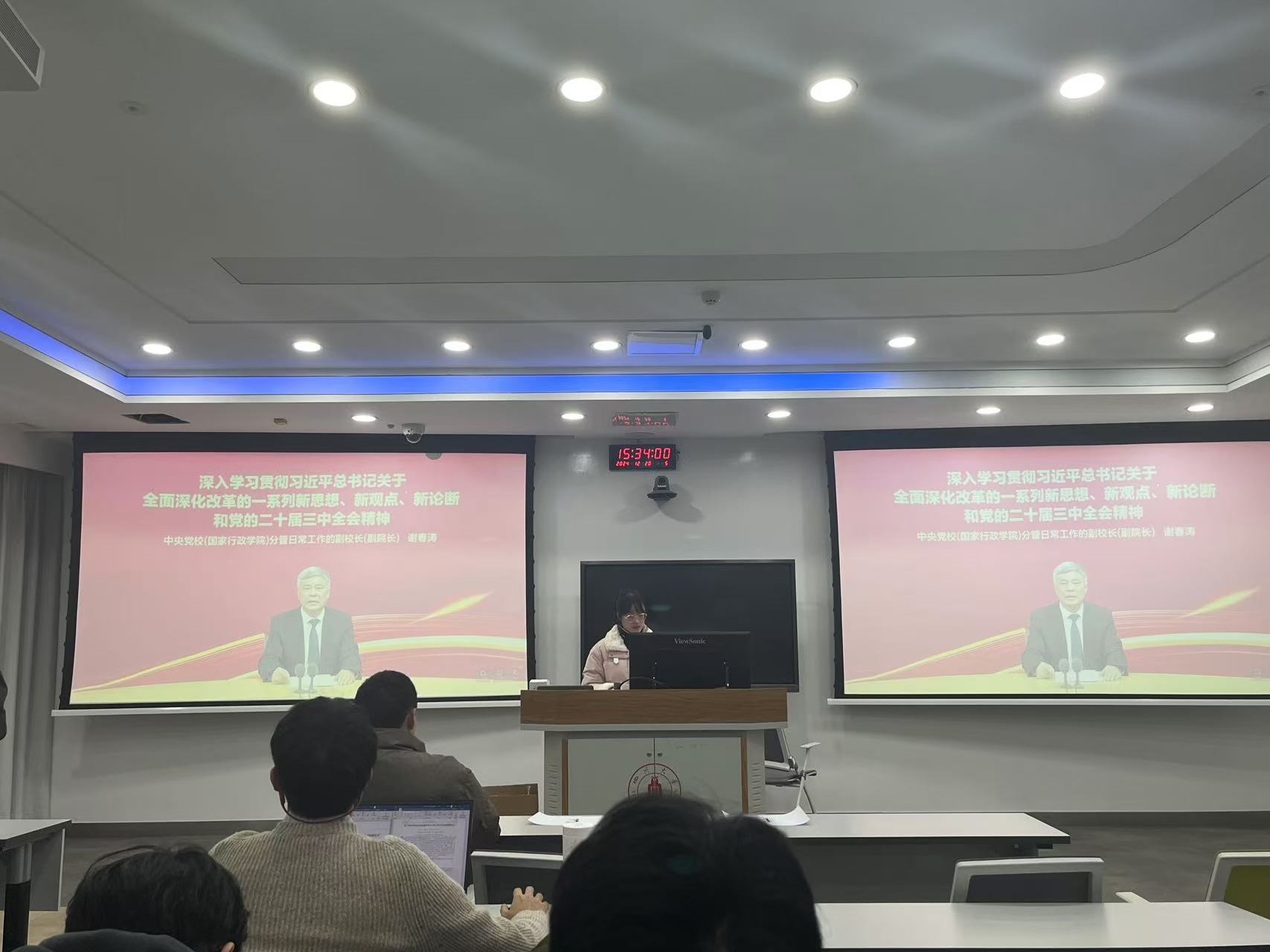 然后,秦嘉忆同志带领大家收看中央党校谢春涛副董事长的关于深入学习贯彻习近平总书记关于全面深化改革的一系列新思想、新观点、新论断和党的二十届三中全会精神的专题报告。此次报告帮助党员和积极分子深入了解并消化党课内容,更好地将理论与实际相结合。