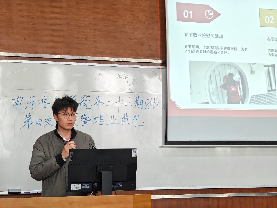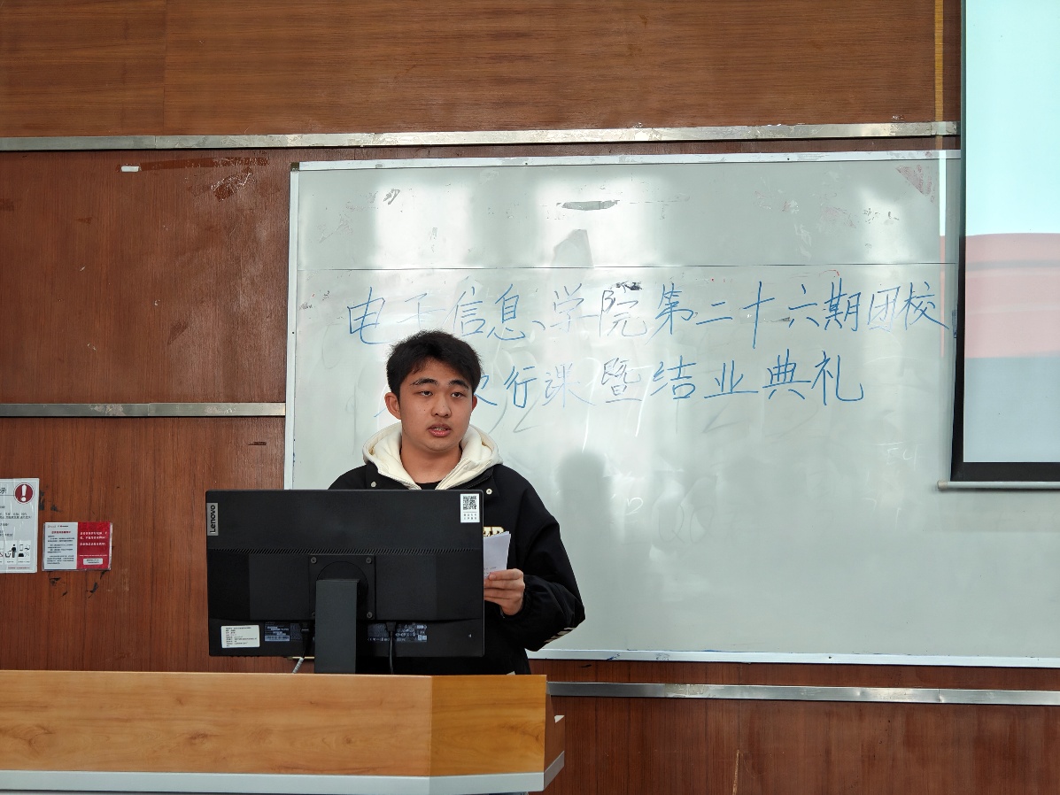 授课结束后,进入学员分享环节。李汶壕和曾琳庭两位同学分别分享了他们在寒假期间去往敬老院帮助老人的经历以及自己的收获心得,讲述了如何用实际行动践行社会责任,传递爱与希望。情真意切,感人肺腑。最后,员工代表欧津岑上台发言,表达了对团课学习的深刻体会和未来展望,为本次活动拉下了序幕。