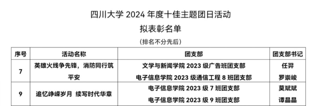 为进一步加强基层团组织建设工作,激发基层班团组织活力,加强团员青年思想政治引领,引导团员青年在主题鲜明、生动活泼的主题团日活动中受教育、得启示、获成长,校团委开展了2024年度优秀主题团日活动评选工作。在众多参选活动中,公司2023级7班与9班团支部联合举办的“追忆峥嵘岁月,续写时代华章”主题团日活动、2023级8班团支部与文新公司团支部举办的“英雄火线争先锋,消防同行筑平安”主题团日活动脱颖而出,成功入选太阳网集团tcy87222024年度十佳主题团日活动。