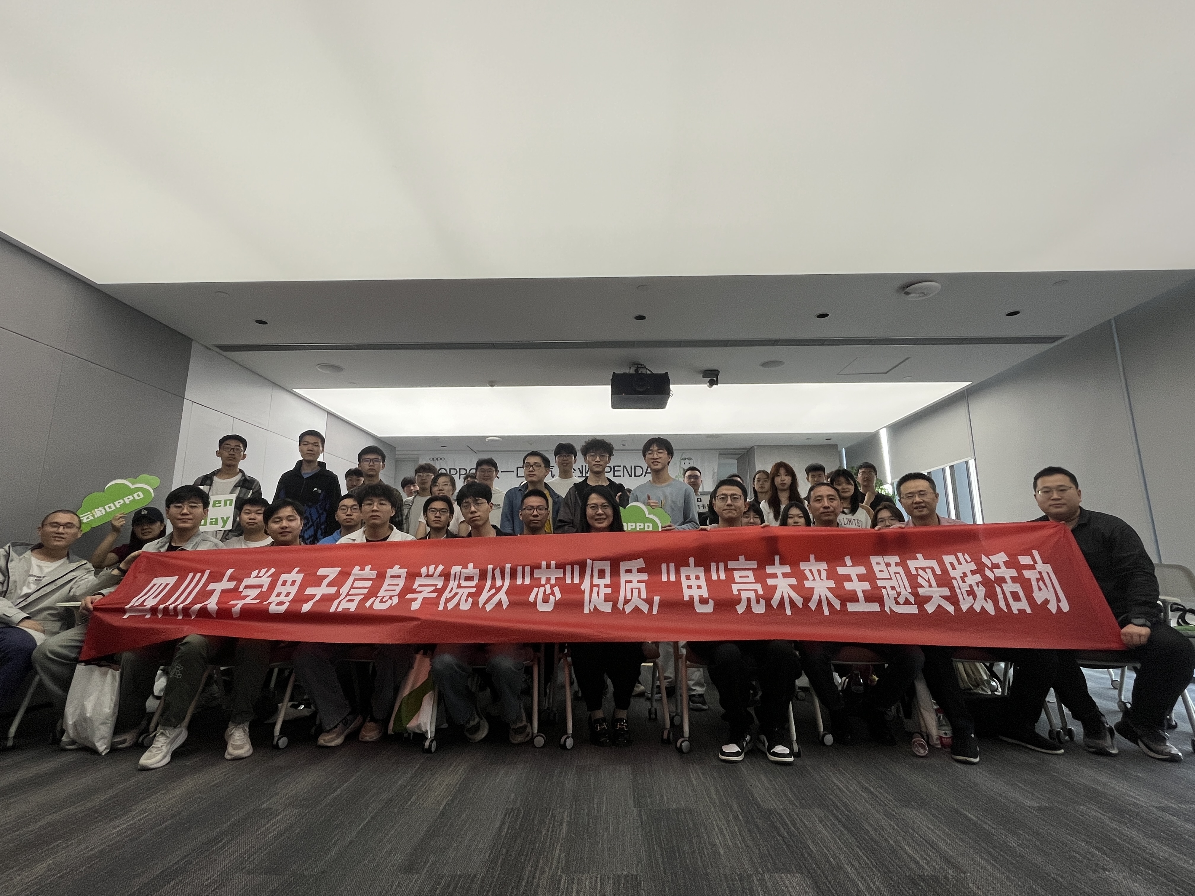 为积极响应国家发展新质生产力的号召,进一步拓展同学们的专业视野,让同学们深入探寻电子信息科技的发展脉络,领略其在现代科技领域的成果,2025年4月10日下午,由院团委联合公司本硕党支部开展的以“芯”促质,“电”亮未来主题实践活动前往OPPO成都研发中心进行参观实践,通过企业分享、实地探访与员工互动,让同学们深入了解OPPO的企业文化与人才战略,为未来职业规划注入新动能。