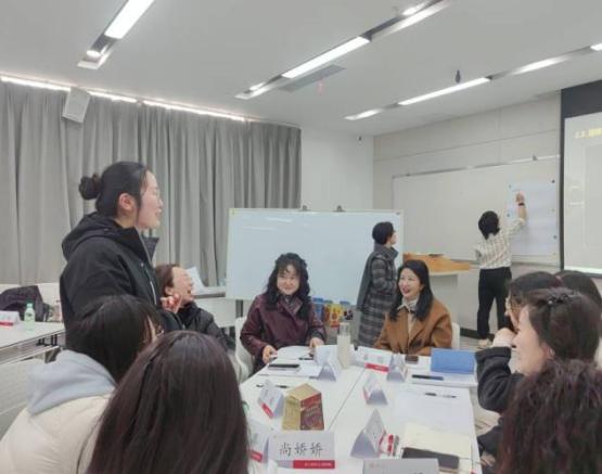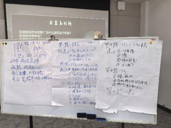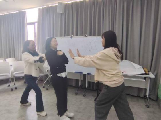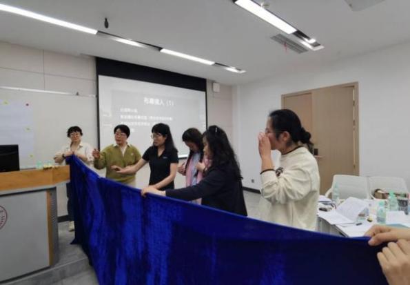 第三周是团体凝聚阶段,“信任倒”游戏考验并加深了团队成员间的信任。大家围成圆圈,中间的成员将自己完全托付给同伴,向周围倾斜,而同伴们则齐心协力稳稳接住。从双人倒、三人倒,再到风中柳、太空舱等环节,每一次挑战都伴随着深入的讨论。借助团体凝聚力相关理论的讲解,老师们深入交流,纷纷表示对自己和团队成员有了更深刻的认识,团队凝聚力也得到了进一步提升。