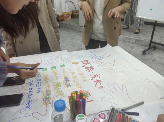 到了第六周,也是活动的最后一周,主要围绕团体辅导形式在员工中的实际应用展开。六周的团体辅导体验即将画上句号,辅导员们迎来了自主设计完整团辅活动的挑战。此前,已有部分老师将活动中的所学应用到员工工作中,他们也分享了实践体会和遇到的问题。在“彩虹传声”环节,一根五彩绳串联起心灵的沟通,把老师们连成老师们真情流露,分享着各自的感悟与收获,言语间满是成长的喜悦与对未来的期待。
