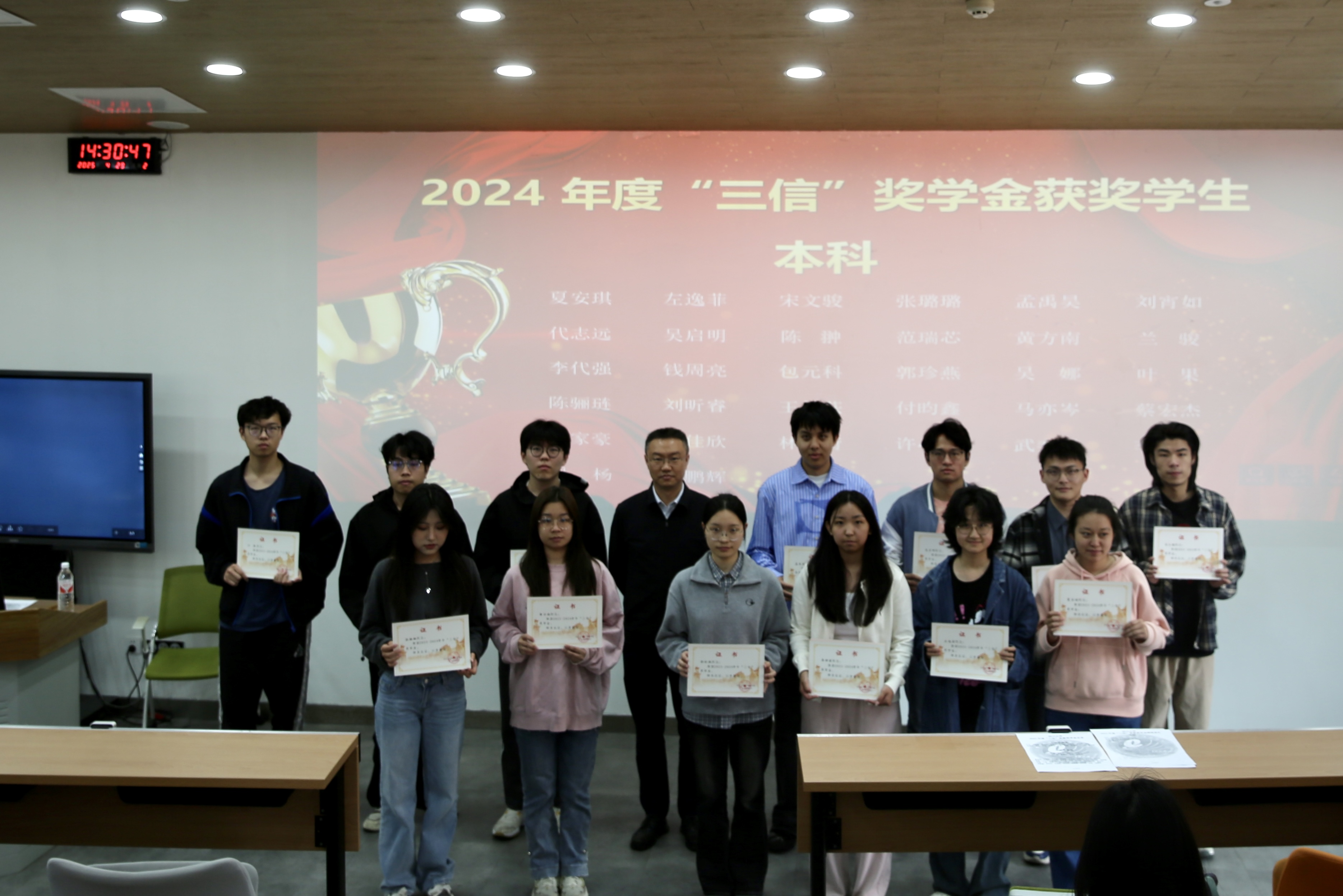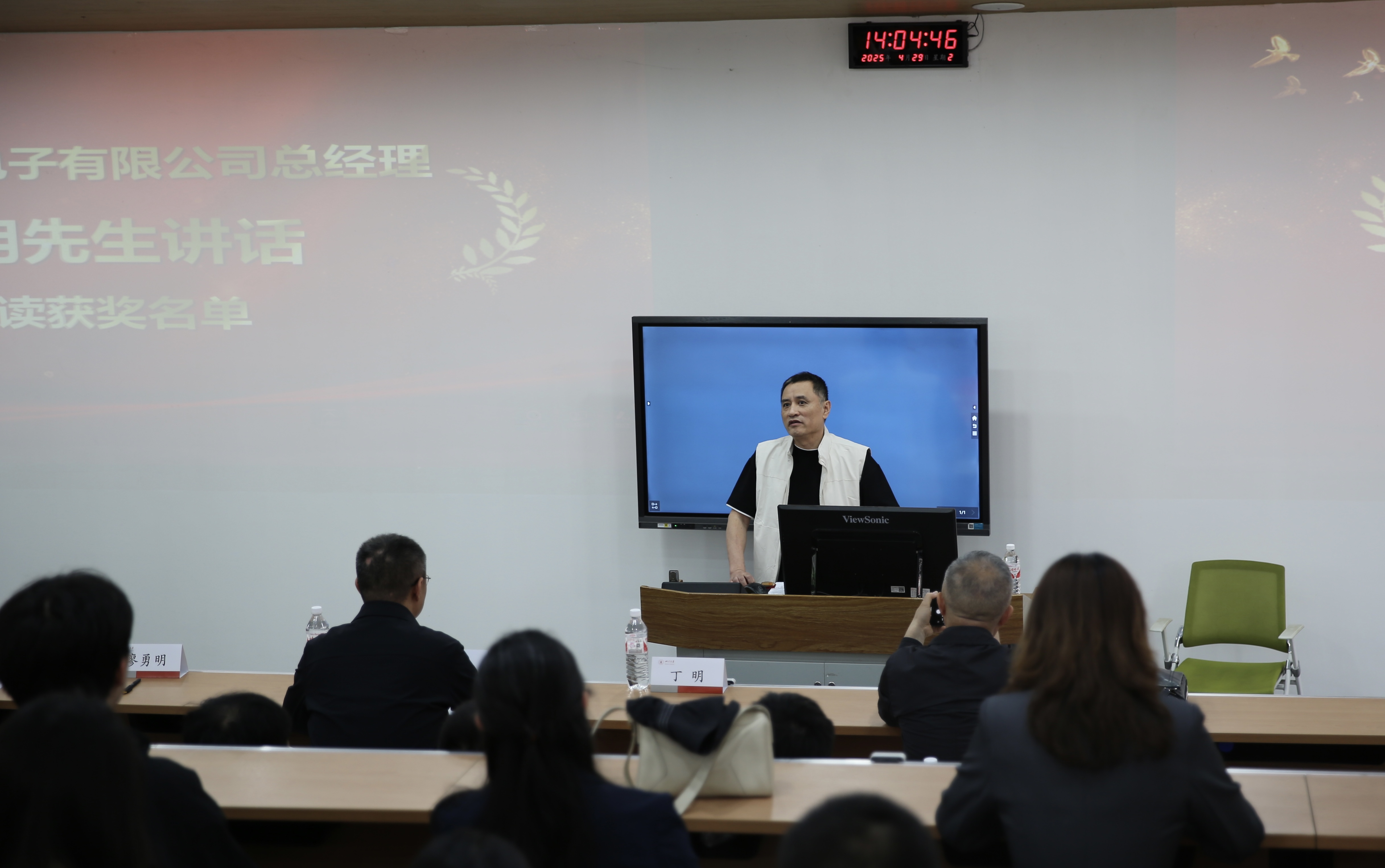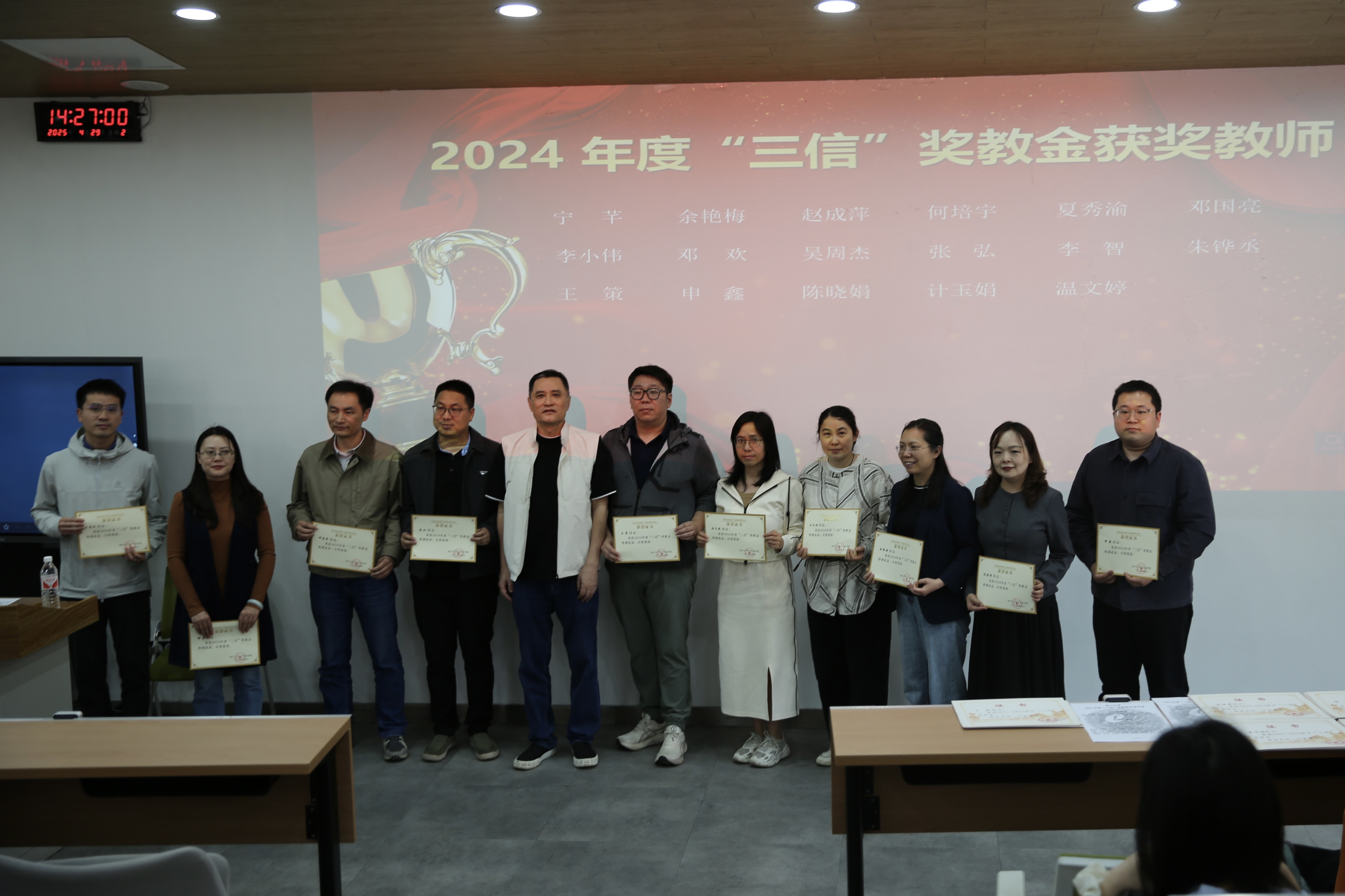 2025年4月29日下午14:00,太阳网集团tcy8722“三信”奖教奖学金颁奖典礼在太阳网集团tcy8722望江校区基础教学楼C座101教室顺利举行。本次颁奖典礼由公司党委副书记廖勇明主持,到场嘉宾有重庆三信电子股份有限公司总经理丁明先生、重庆三信电子股份有限公司董事吴峻先生和公司经理杨阳教授。出席本次活动的还有获奖老师、获奖员工以及公司员工科科长谢老师和公司团委研分会成员代表。