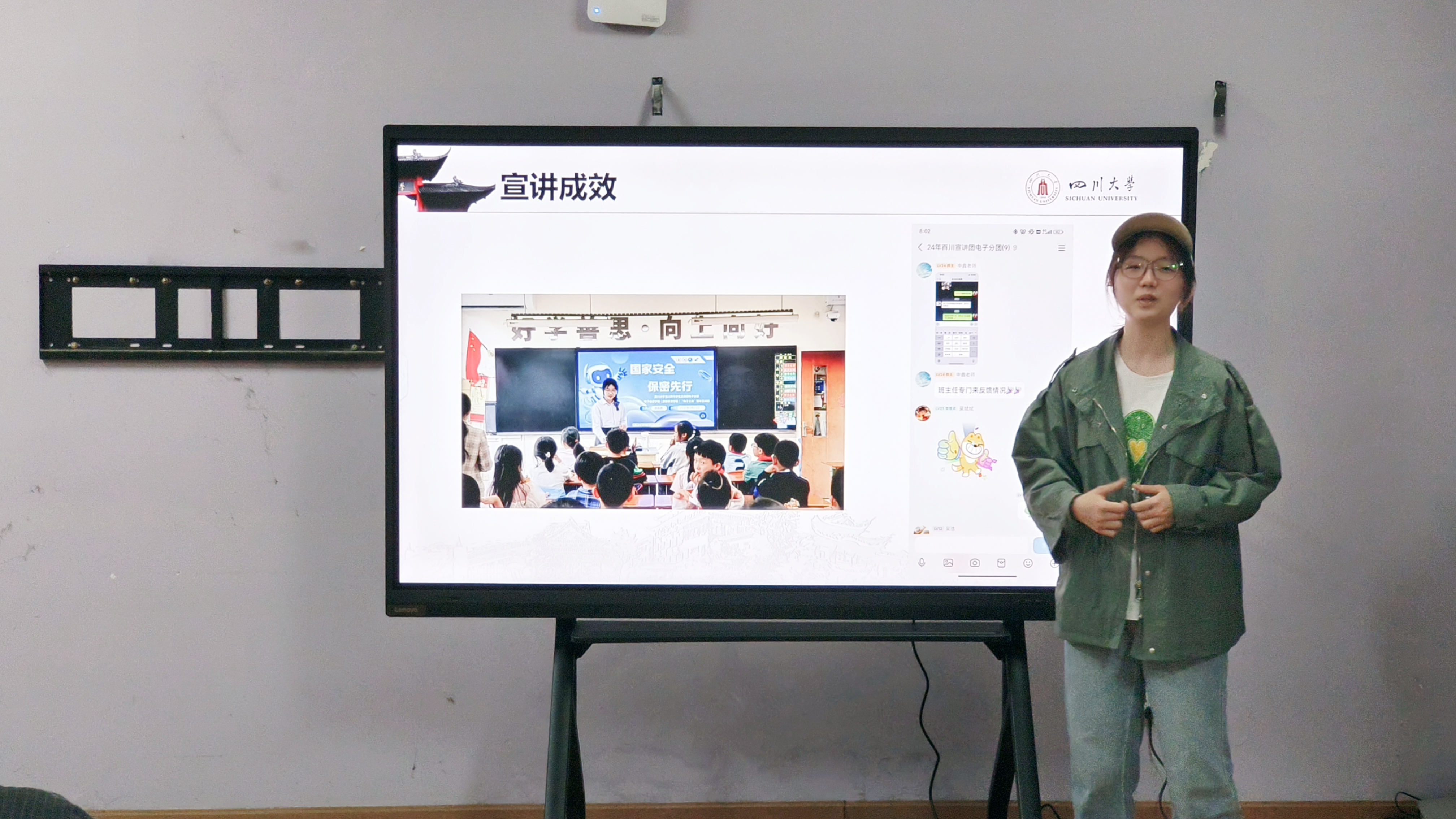 随后,宣讲团成员依次进行了工作汇报。在汇报过程中,吴浩同学分享了自己在宣讲过程中的成长经历,他说道:“从集体备课试讲,到真正走出去宣讲,在这个过程中自己的演讲能力得到了很大的提升。” 而谭晶晶同学则表达了对团队的赞美之情,她表示:“宣讲团的每一位成员都很团结,都在为了讲好国家安全而努力。” 宣讲员们的汇报不仅展现了成员们在宣讲过程中的个人收获,更体现了团队的凝聚力和合作精神。
