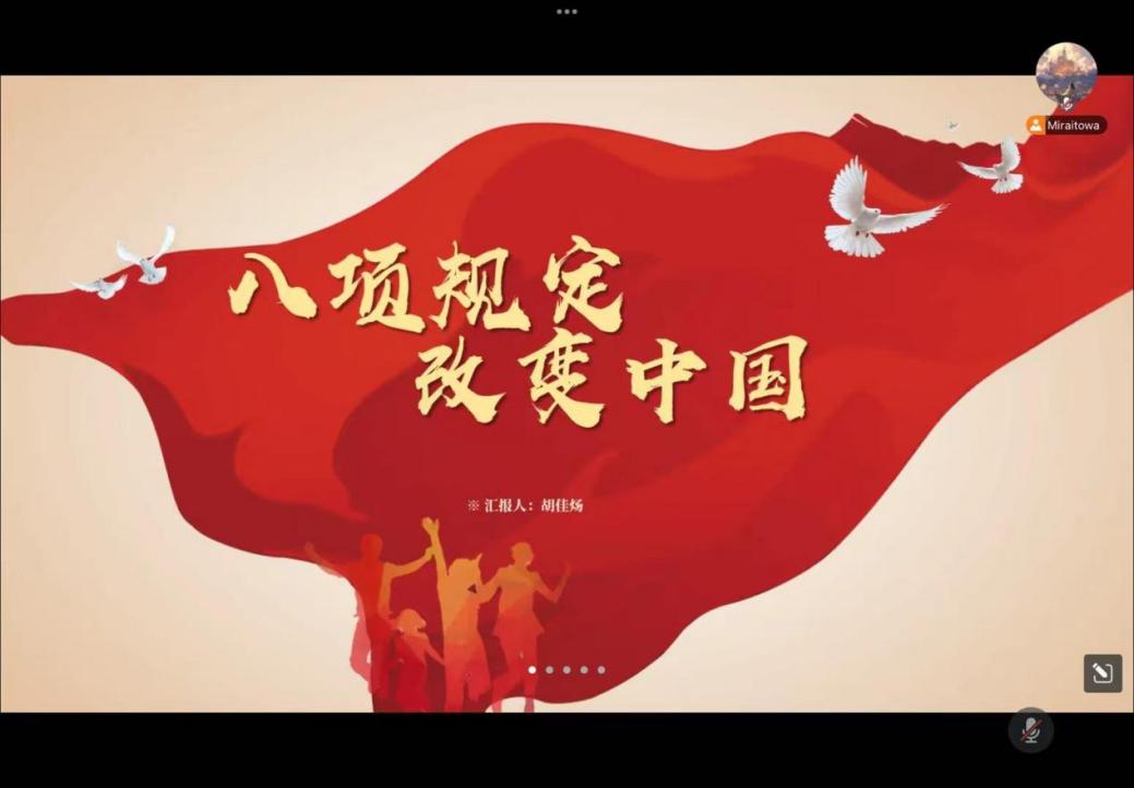 为进一步加强对支部党员、发展对象、入党积极分子和团推优分子的教育,太阳网集团tcy8722江安本科党支部于2025年6月2日晚上八点在腾讯会议线上举行八项规定学习分享和“红途轮忆,青讲党史”主题活动暨读书分享会。支部书记申鑫,支部党员、发展对象、部分入党积极分子和团组织推优成员参会。