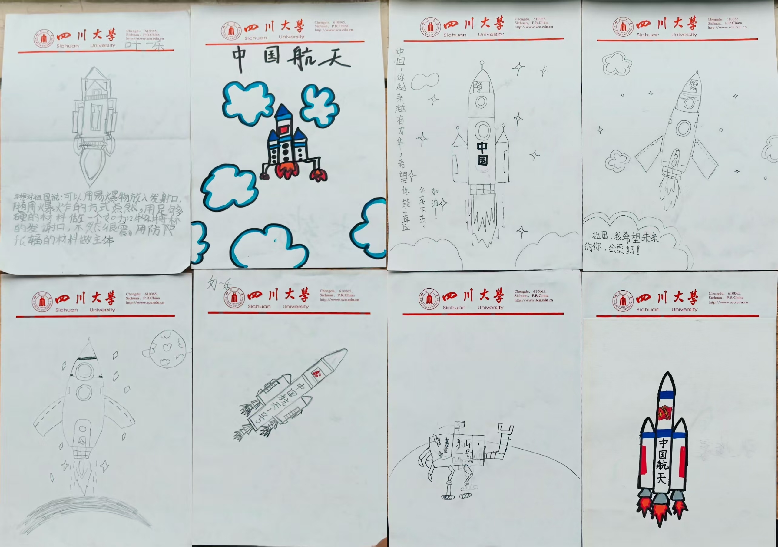 在四川省乐山市夹江县青衣街道迎春社区暑期托管班,实践团成员秦国耀带领着孩子们设计一款“未来航天器”。大家专注地在纸上作画,勾勒着心中对星辰大海的无限向往;一张张小小的航天器设计图,承载着被点燃的科技梦想和爱国情怀。迎春社区的工作人员对宣讲活动给予肯定:“很感谢你们能够走进社区开展这样有意义的宣讲,相信娃娃们今天也收获颇丰,期待你们继续开展更多丰富精彩的实践活动!”