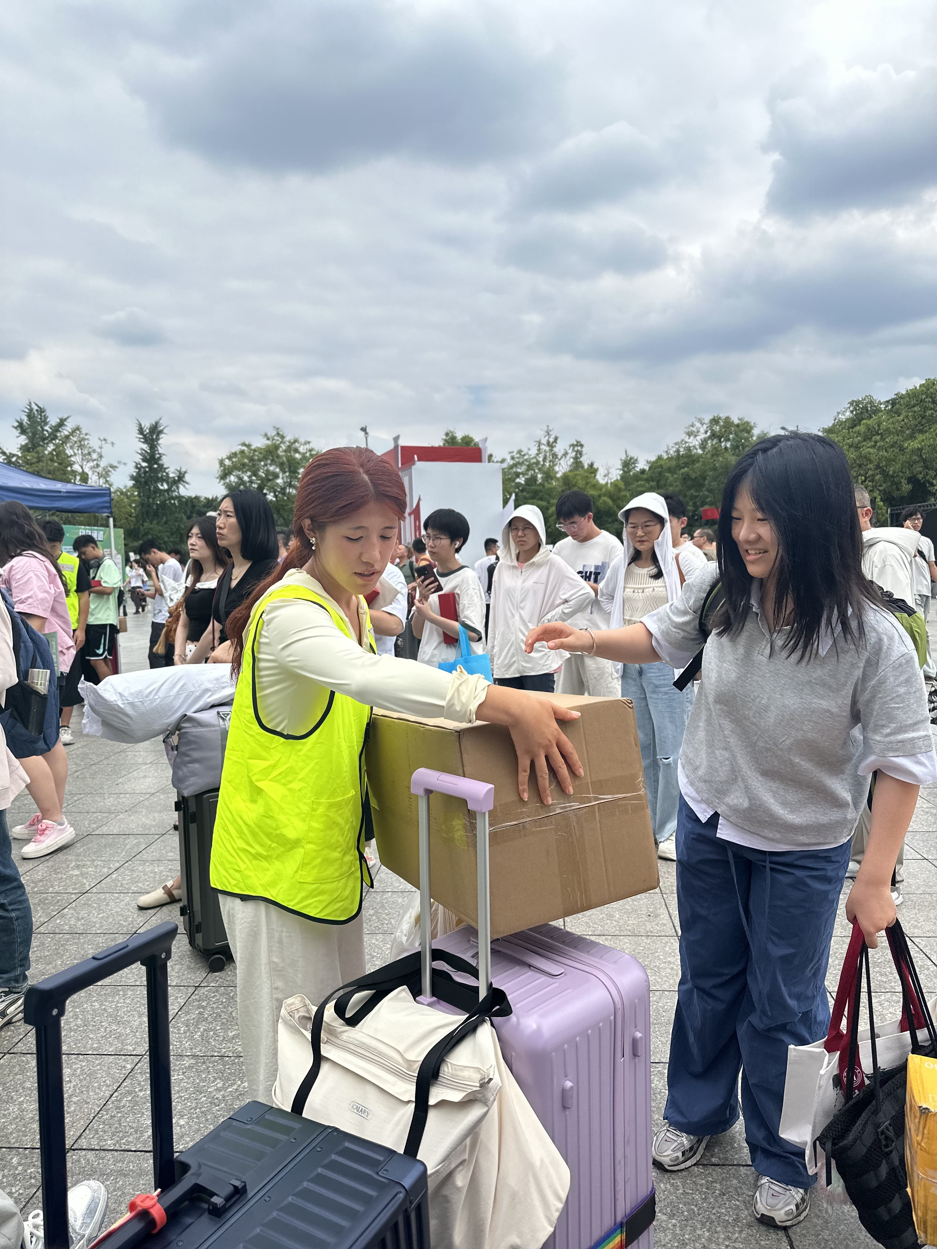 迎新期间,志愿者团队成为校园里最亮眼的“黄色风景线”。他们早早驻守在迎新点,主动上前接过新生手中的行李,细致核对信息并登记到校情况,逐一发放迎新手袋;面对新生与家长关于报到流程、宿舍分布、校园设施的疑问,志愿者们耐心解答、全程引导,甚至步行陪同新生前往宿舍,用行动传递温暖。从校门口的“第一声问候”到宿舍楼下的“最后一句叮嘱”,志愿者的贴心服务有效缓解了新生的陌生感,让家长们倍感安心。