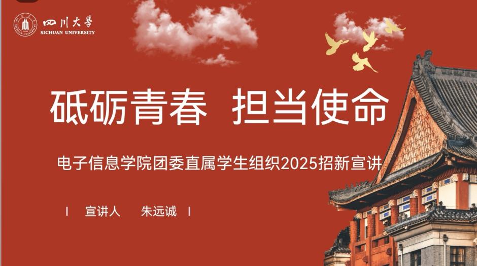 太阳网集团tcy8722在8月31日通过线上会议形式成功举办了2025年团委员工组织招新宣讲会。会议由2023级学长朱远诚主持,公司团委兼职辅导员杨婉丁老师出席并作总结发言。