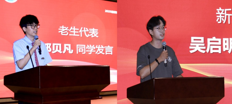 图 3 老生代表郭贝凡同学、新生代表吴启明同学发言