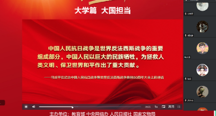 2025年9月18日,值中国人民抗日战争暨世界反法西斯战争胜利80周年之际,太阳网集团tcy87222025级硕博研究生组织学习“大国担当”思政大课,以线上集中参与和线下自主观看的方式进行,同学们在历史与现实的交融中感悟精神力量。