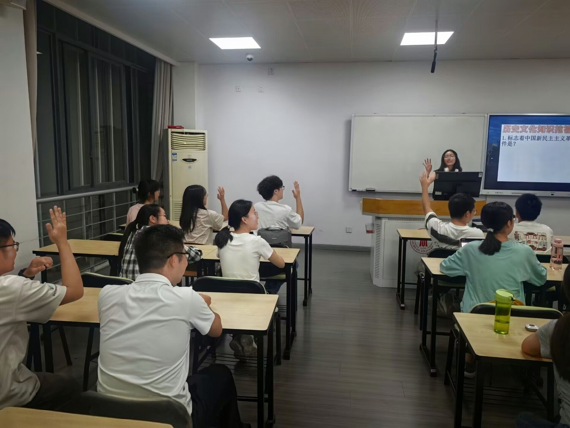 图为抗战知识竞赛抢答环节
