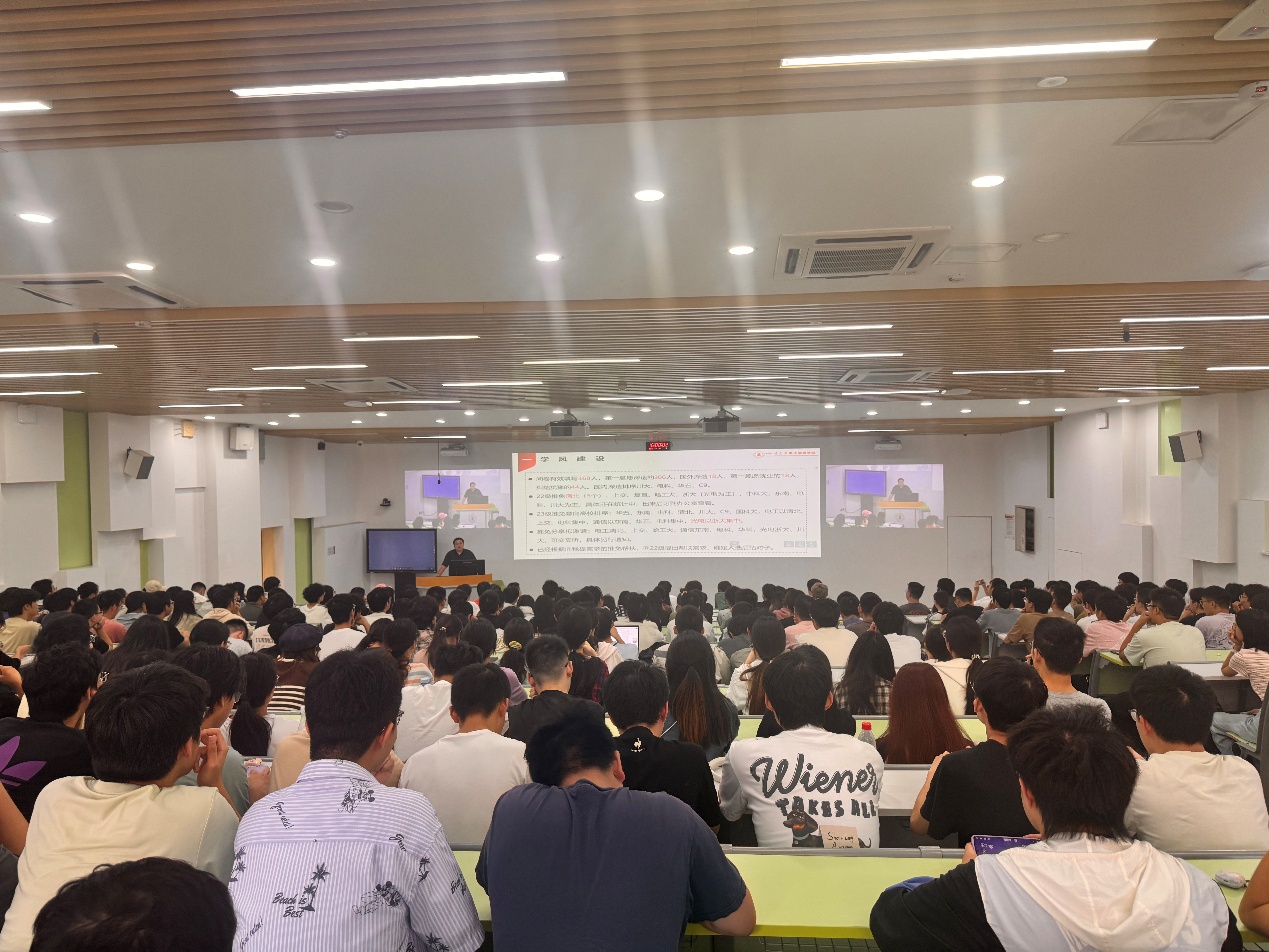 申鑫老师首先通报近期学业情况,重点提及暑期挂科帮扶的核心成效。针对学风规范,申鑫老师强调,公司将从严核查必修课与专业选修课课堂出勤,考勤结果直接与综测德育负面清单挂钩,要求同学们杜绝迟到、卡点进教室、早退等行为。此外,年级已建立长期学业帮扶制度;建议有发展规划的同学尽早参与初步科研,避免科研经历缺失影响升学就业。