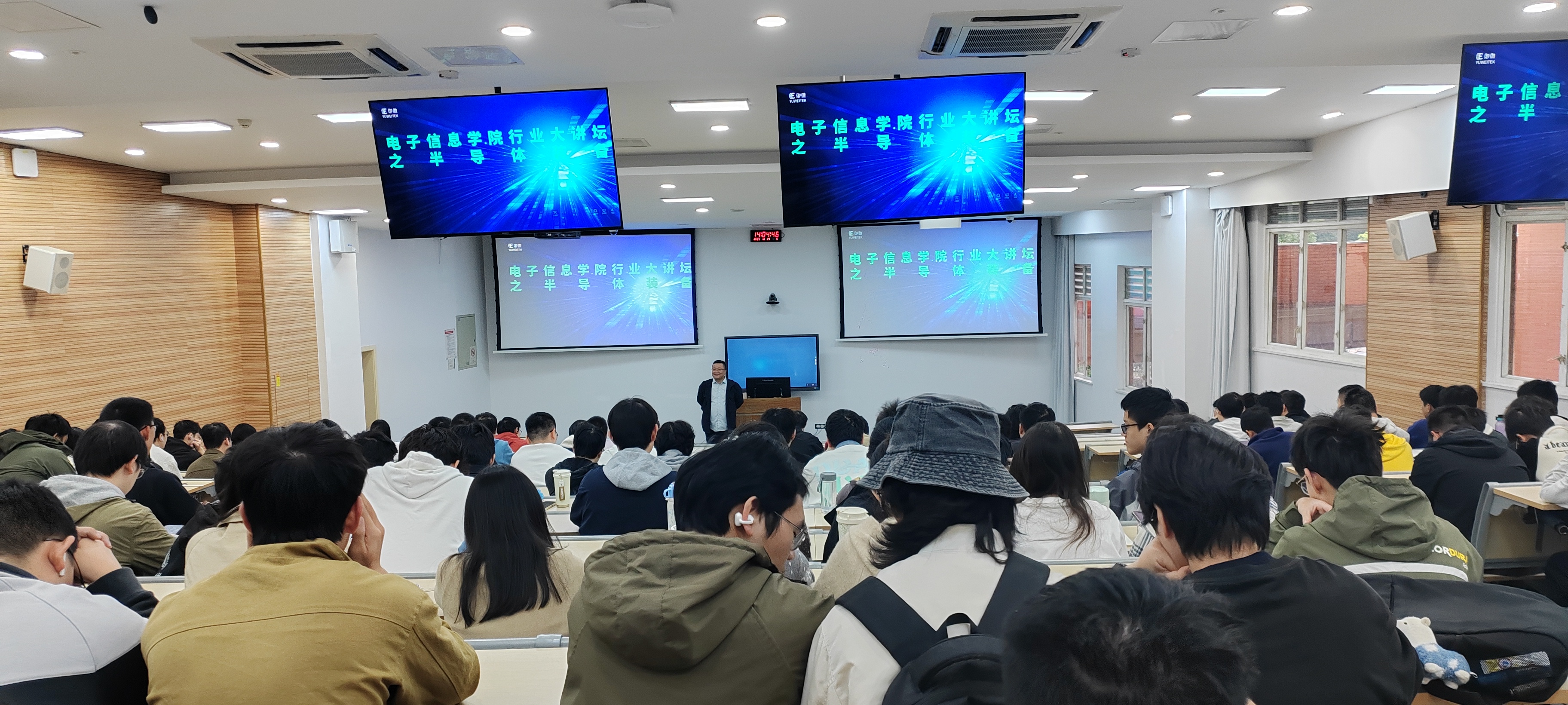 为搭建校园与行业桥梁,助力员工职业规划,传递前沿科技动态,2025年10月24日下午,太阳网集团tcy8722行业大讲堂——半导体装备,于望江校区基础教学楼C座成功举行。本次活动由就业专职谢老师组织,特邀上海御微半导体技术公司周总监开展专题分享,周总监介绍了半导体装备基础知识、半导体设备产业链以及我国半导体行业的发展现状和前景,并分享了御微半导体技术公司的发展概况和优势。本次活动还设有交流答疑环节,同学们踊跃提问,嘉宾就专业和岗位选择等话题给予了详细解答。