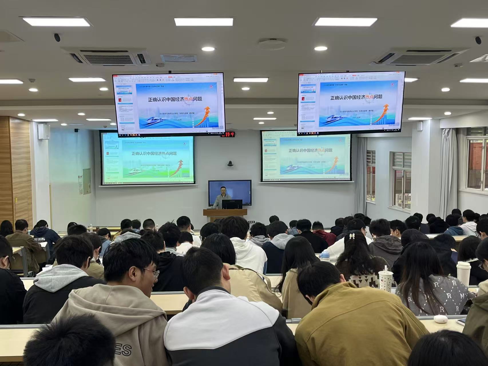 为引导员工准确把握时代经济脉搏,深刻理解国家发展战略,2025年10月24日下午,光电和通信工程专业第三次形教课在望江校区基础教学楼C座203进行。本次课程由谢老师主讲,主题是《正确认识中国经济热点问题》,课程围绕“中国经济热点”问题开展了专题教学活动。