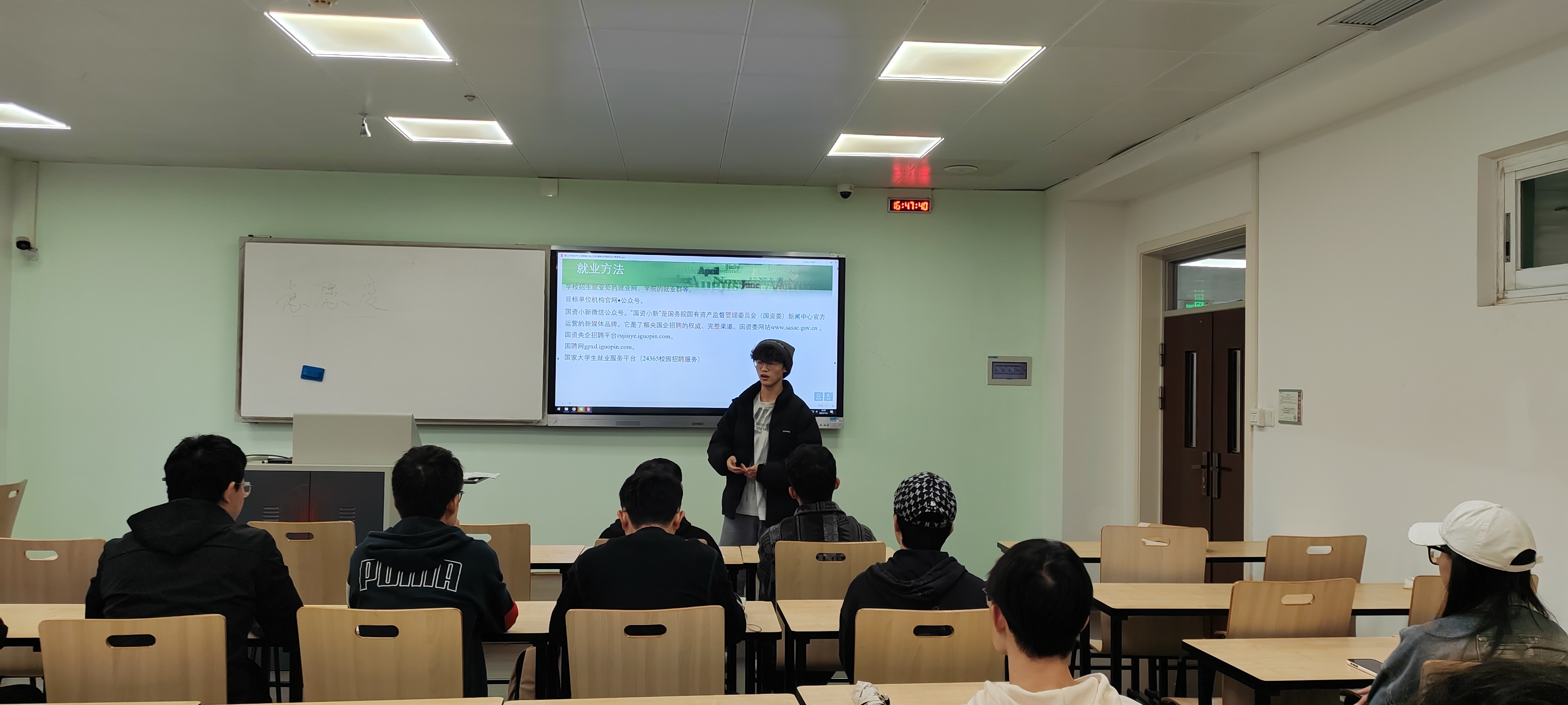 会上,电子信息工程专业的李光阳和通信工程专业的兰逸寒首先分享了他们的求职经验,围绕“海投”简历的策略、笔试的准备工作及面试的应对技巧进行了深入交流。随后,公司就业指导谢老师进行专题讲解,重点剖析了求职过程中的关键要素:一是强调全力以赴的精力投入,指出“状态决定结果”,一定要早起早睡;二是鼓励主动出击,积极搜集就业信息与方法,明确“做了什么”与“将怎么做”的规划建议;三是提升求职意愿度,以在激烈竞争中脱颖而出。老师还特别分析了当前招聘单位的新变化,提醒同学们拓宽视野。