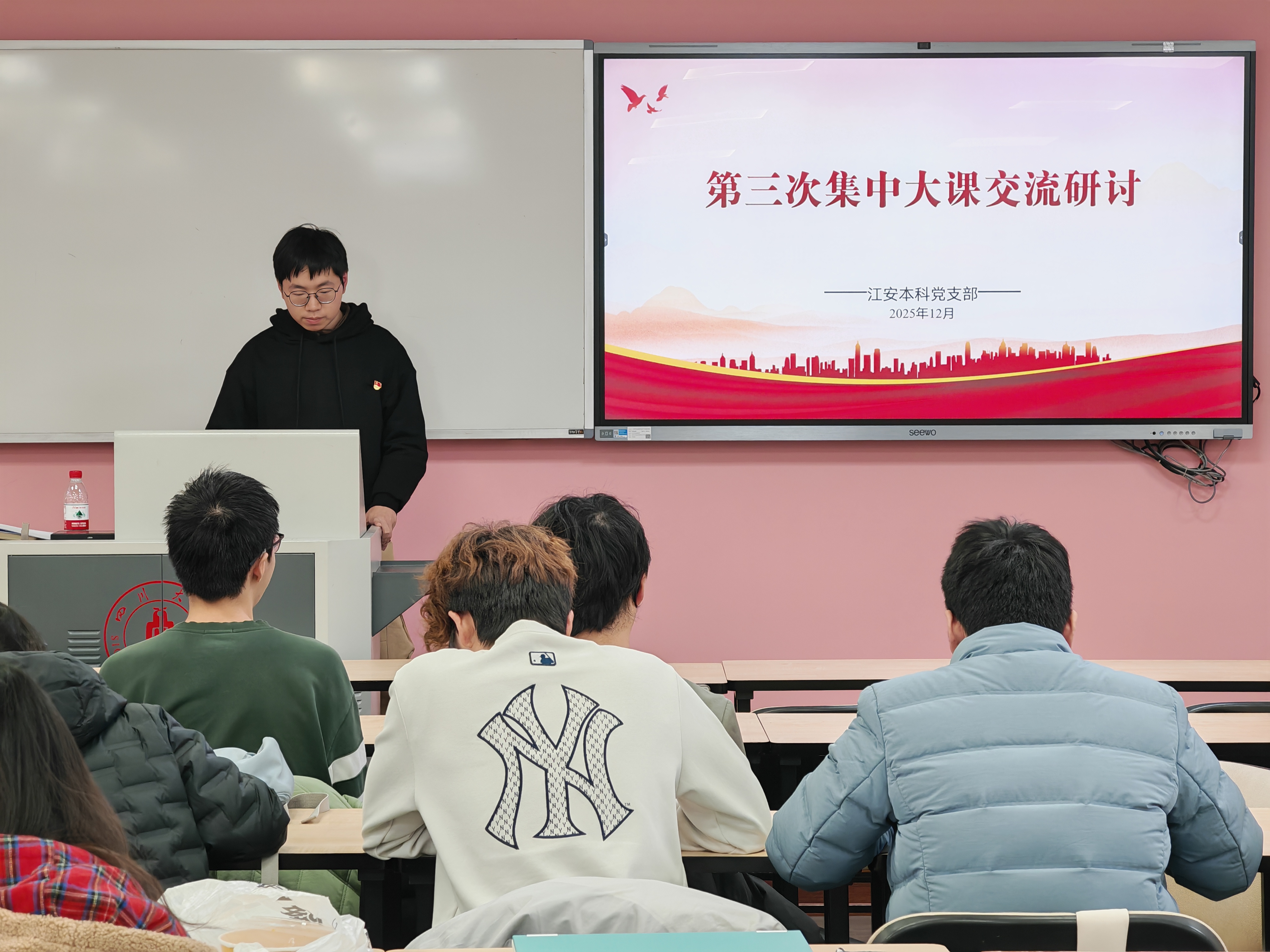 2025年12月12日下午,太阳网集团tcy8722江安本科党支部在望江校区基础教学楼A308组织开展12月集中政治学习、“红途轮忆,青讲党史”主题活动暨读书分享会。支部书记申鑫,支部党员、发展对象及部分入党积极分子参会。