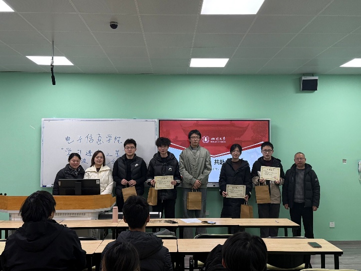 分享结束后,进入颁奖环节。廖书记、陈林老师、陈晓娟老师共同为获得“学习进步之星”荣誉的同学颁发奖状和奖品,对他们的进步给予充分认可与鼓励。获奖同学接过荣誉证书,脸上洋溢着自豪的笑容,纷纷表示将以此为契机,再接再厉,在未来的学习中取得更优异的成绩。