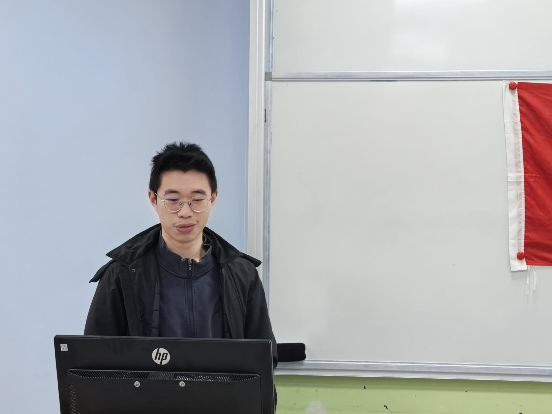 图为朱远诚同学进行主题宣讲