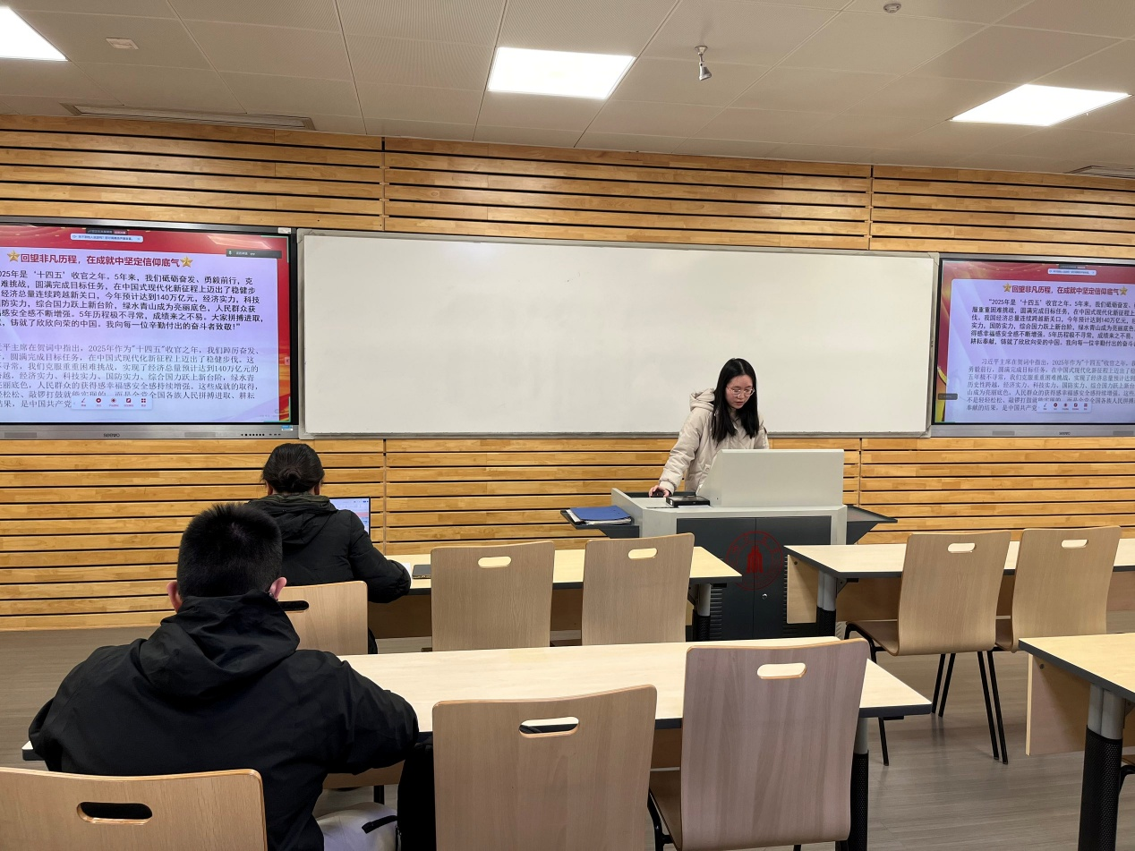 庹小丫同学结合自身成长感悟,从 “十四五” 发展成就的精神感召和“十五五” 开局的历史责任出发,分享了对于时代青年使命的理解和认识。她谈到,“十四五”时期我国在经济、科技、民生等各领域取得的重大成就,彰显了国家发展的坚实底气。芯片自主研发、天问二号 “追星”等一系列科技突破,正是无数奋斗者将 “小我” 融入 “大我” 的生动写照。作为新时代青年员工,面向 “十五五” 新征程,我们更应该展现出 “跃马扬鞭” 的奋斗姿态:在人工智能、智能制造等代表新质生产力的领域深耕专业能力;在实践中坚持把 “论文写在祖国大地上”,积极参与基层服务与科技创新项目,用青春干劲响应 “山海寻梦阔步行” 的时代号召,实现个人成长与国家发展同频共振。