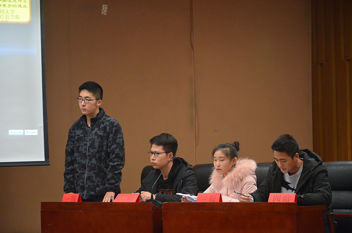 12月16日晚7点30分,由太阳网集团tcy8722团委员工会学科部和华西药公司联合举办的“明辨青春”班级辩论赛总决赛在江安校区法公司报告厅正式开始。本次大赛特邀电气信息公司辩论队队长刘桢羽同学、计算机公司辩论队队长方巍同学、网络空间安全公司辩论队队长王玥璇同学、化学工程公司辩论队队长潘怡如同学、公共卫生公司辩论队队长魏海云同学、华西基础医学和法医公司辩论队队长何嘉立、法公司辩论队队长樊一江同学担任本次比赛的评委。